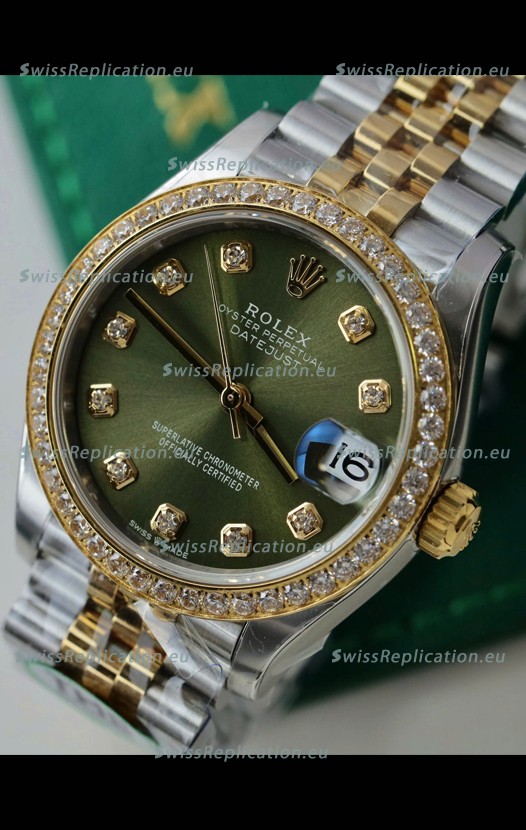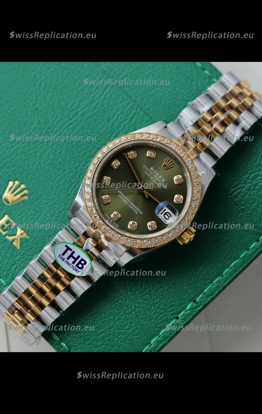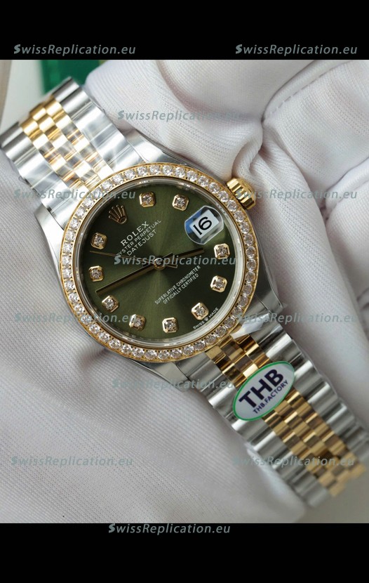 | Description | Rolex Datejust Cal.3235 Movement Super Clone Rose Gold 2 Tone 31MM Green Dial Watch |