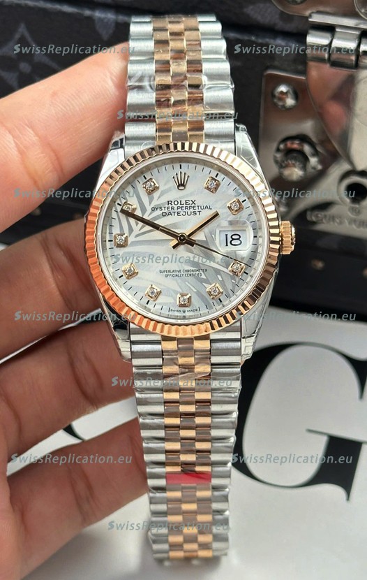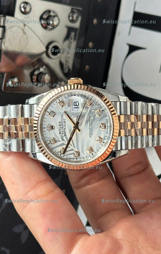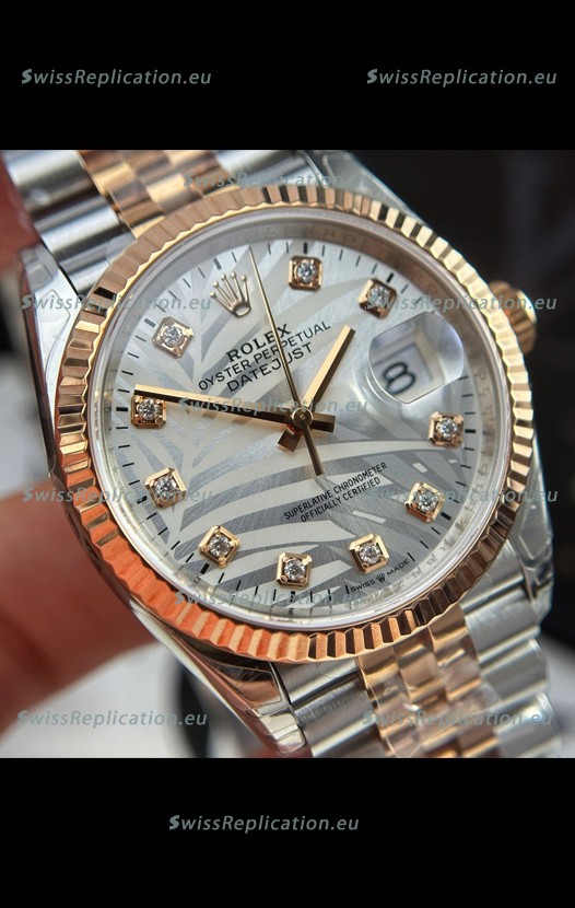 | Description | Rolex Datejust Cal.3235 Movement Super Clone Rose Gold 2 Tone 36MM - Silver Fluted Motif Dial |