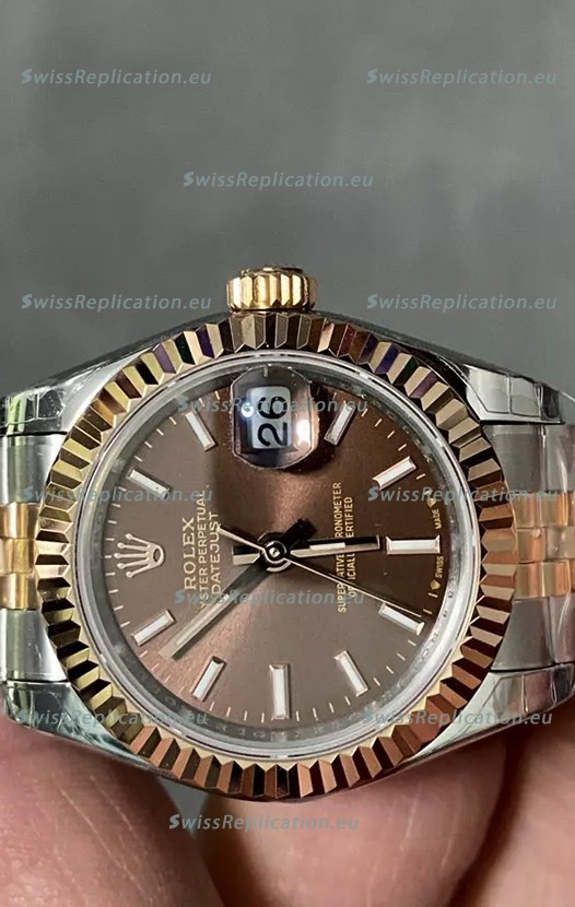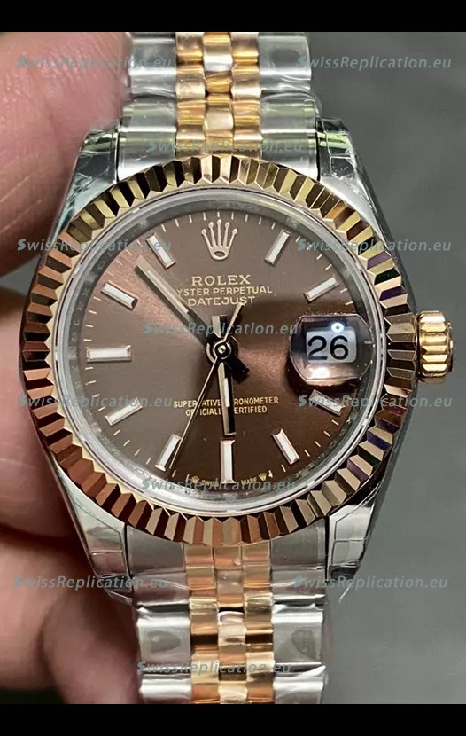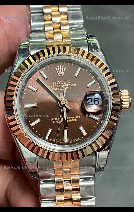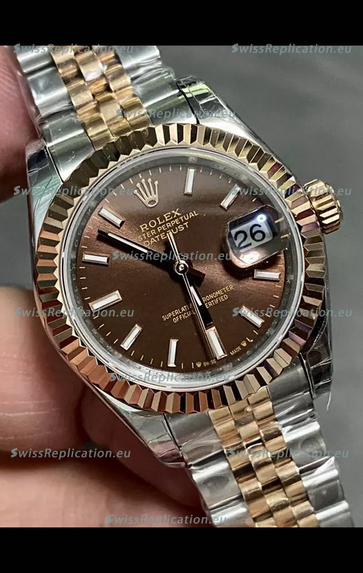 | Description | Rolex Datejust Super Clone Brown Dial 2 Tone Rose Gold Watch 28MM |