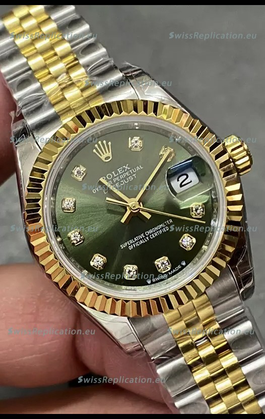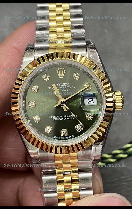 | Description | Rolex Datejust Super Clone Green Dial 2 Tone Yellow Rose Gold Watch 28MM |