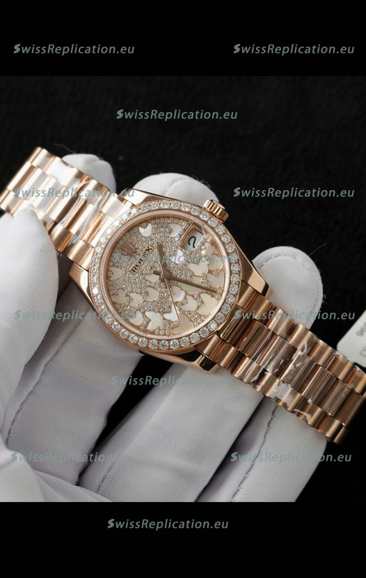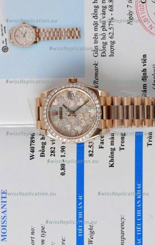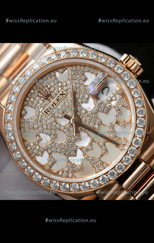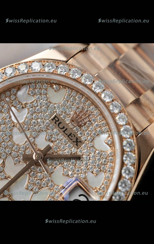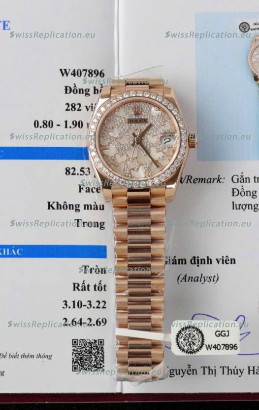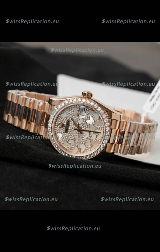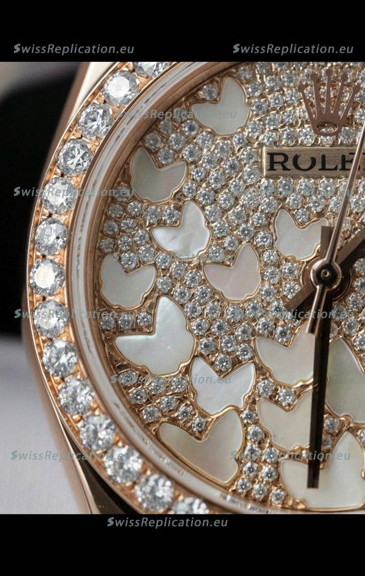 | Description | Rolex Datejust Super Clone Mossanites Butterfly Dial 31MM Rose Gold Watch |