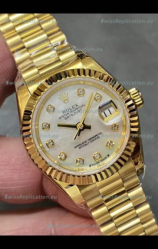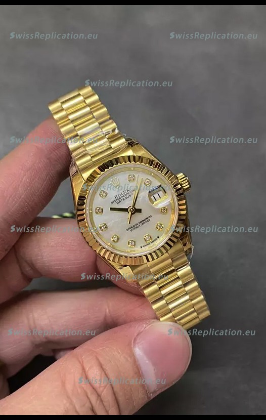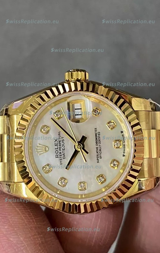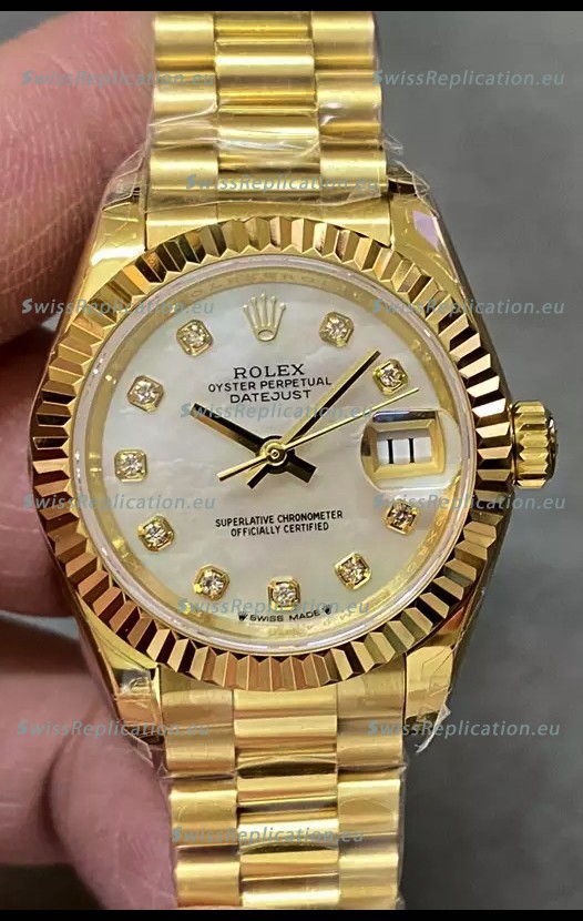 | Description | Rolex Datejust Super Clone Pearl Dial Yellow Gold Casing Watch 28MM |