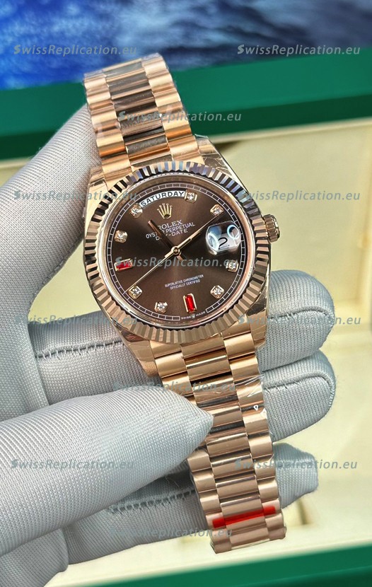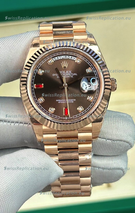Description Rolex Day Date Presidential 18K Rose Gold Watch 40MM - Brown Dial 1:1 Mirror Quality