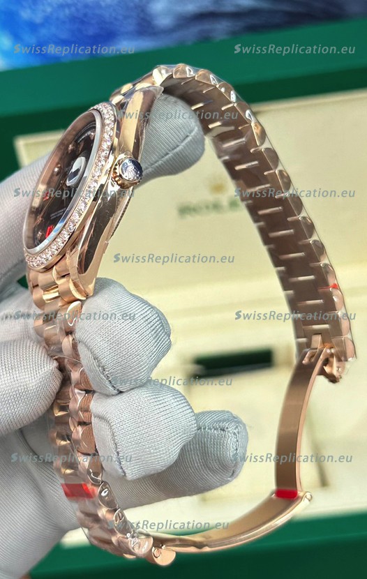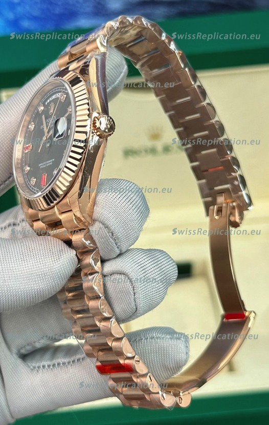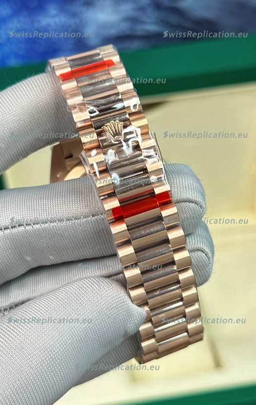 18K Rose Gold Plating on 904L Stainless Steel New Design President Strap with Folding Clasps complete with Rolex Markings and Engravings