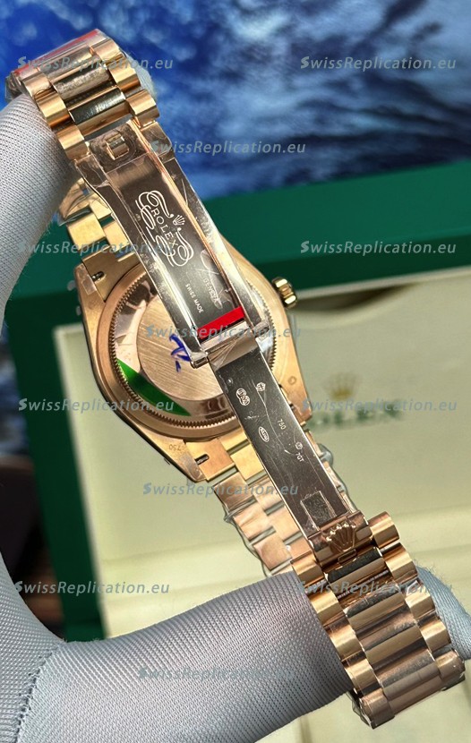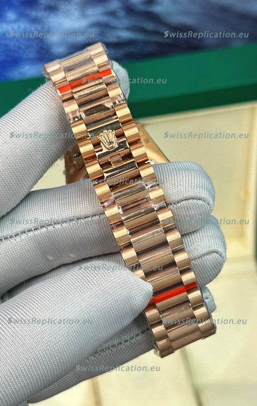 18K Rose Gold Plating on 904L Stainless Steel New Design President Strap with Folding Clasps complete with Rolex Markings and Engravings