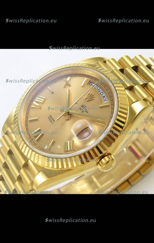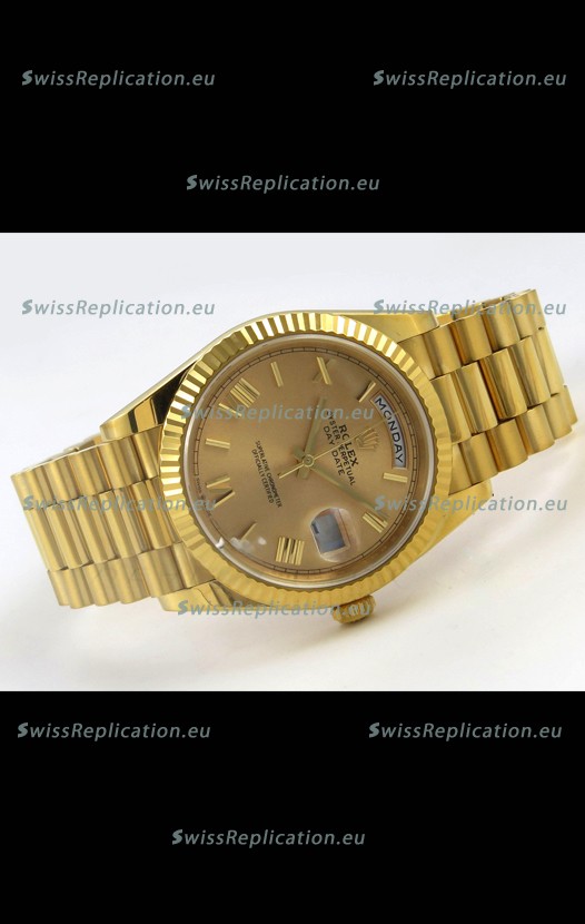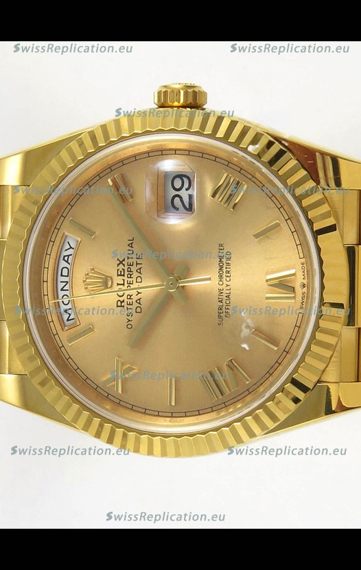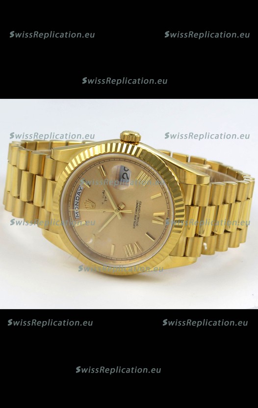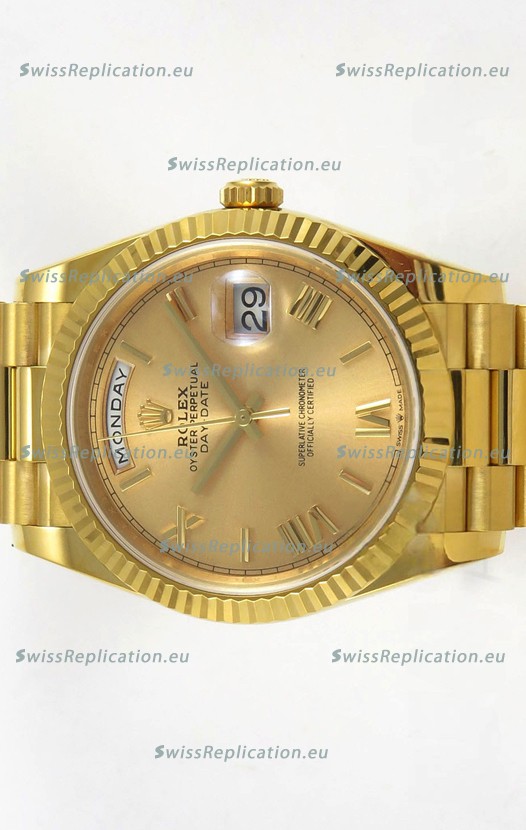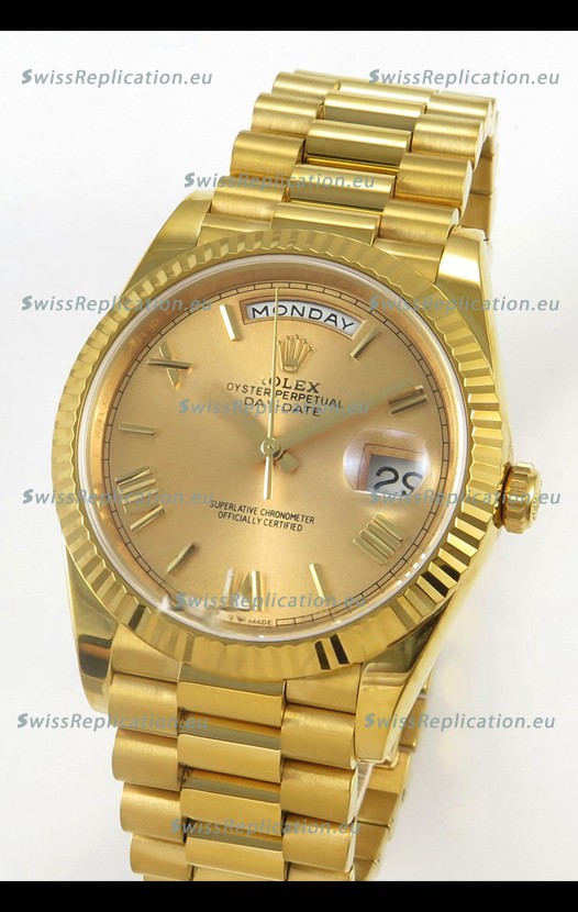 | Description | Rolex Day Date Super Clone Gold Roman Dial 40MM 220 Grams Swiss Replica watch |