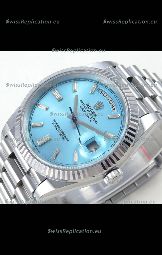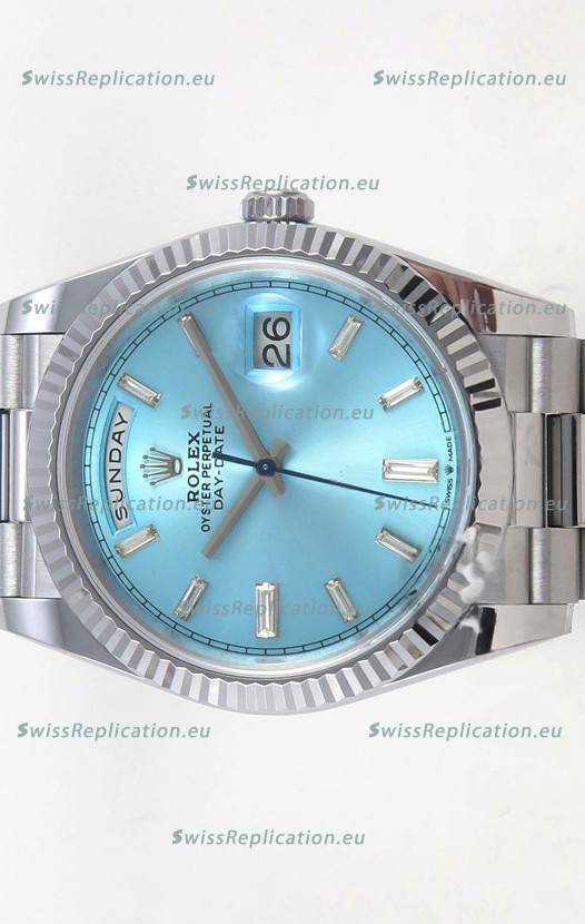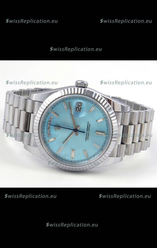 | Description | Rolex Day Date Super Clone ICE Blue Dial 40MM 220 Grams Swiss Replica watch |