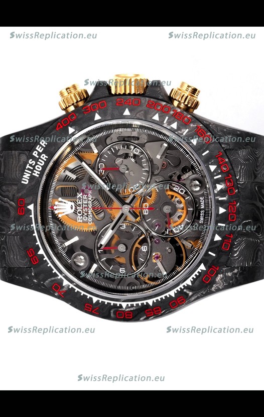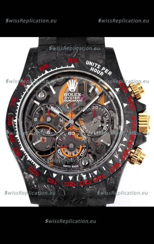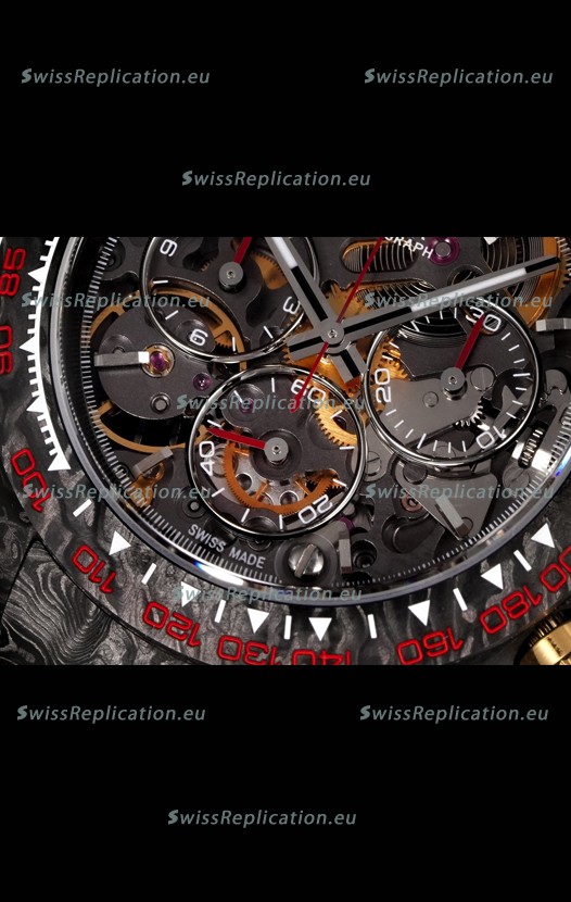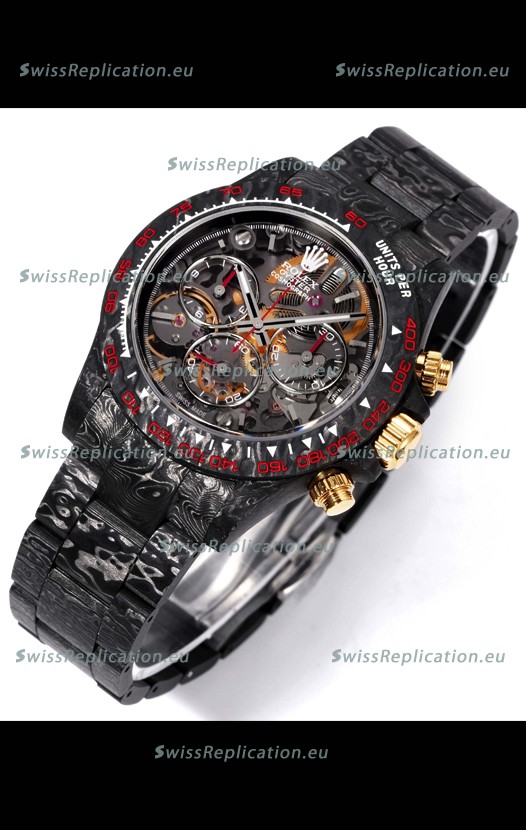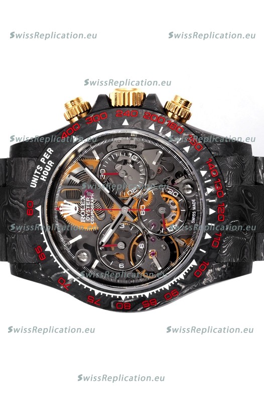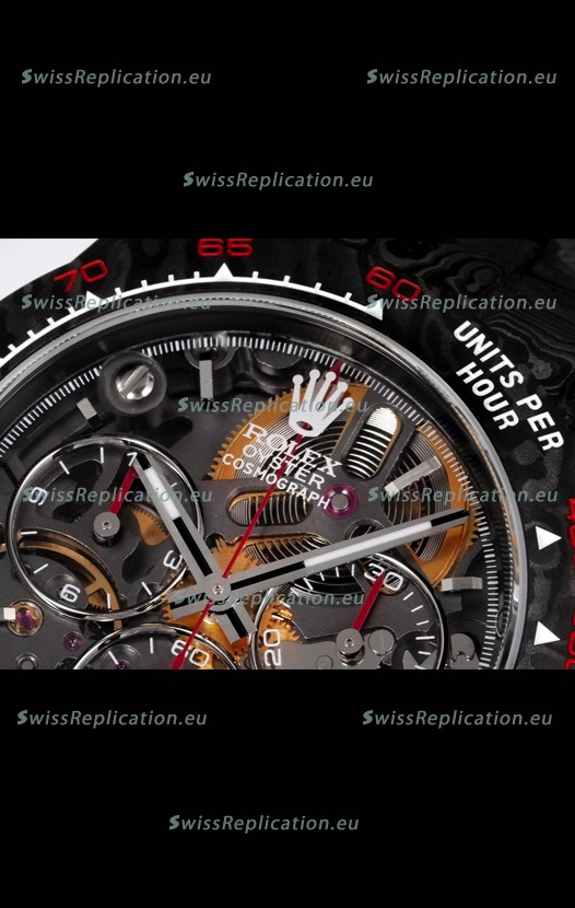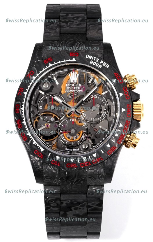 | Description | Rolex Daytona Blaken Black Carbon 1:1 Swiss Mirror Replica Skeleton Dial Cal.4130 Movement |