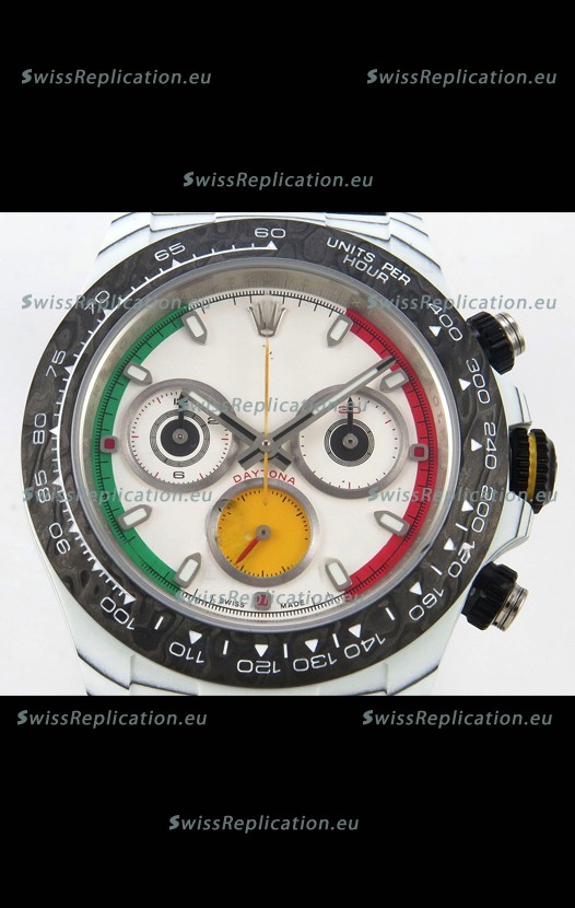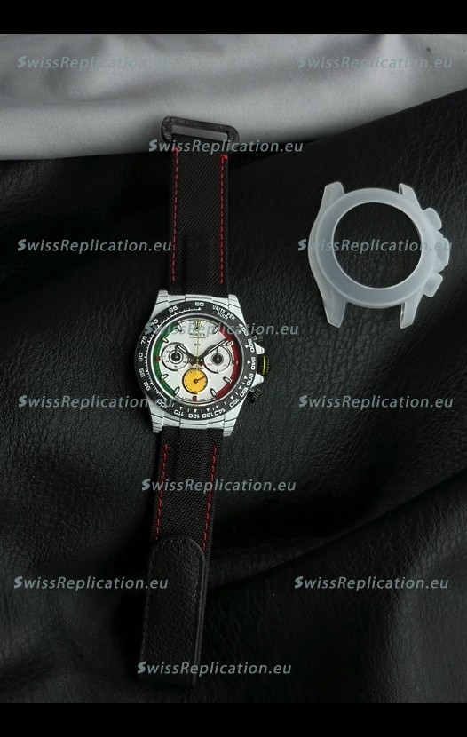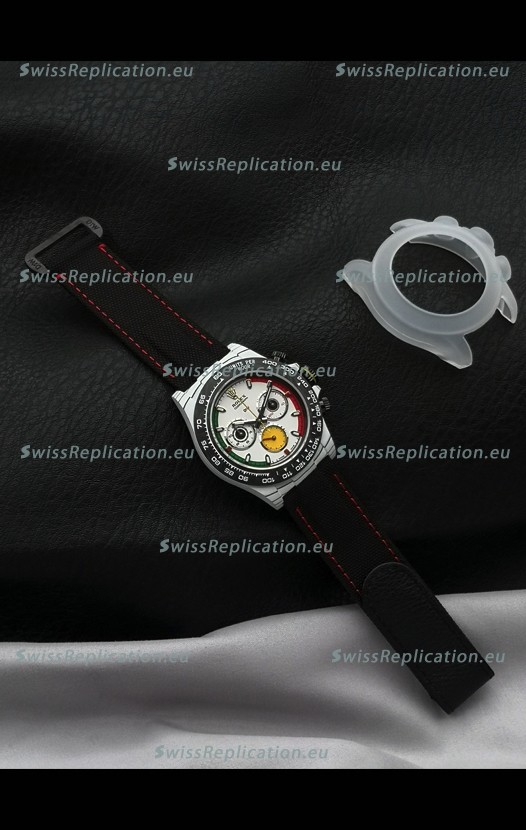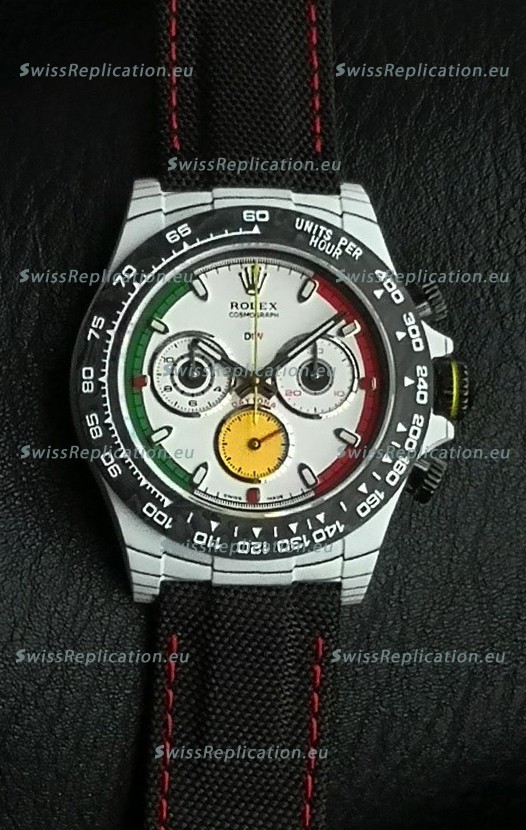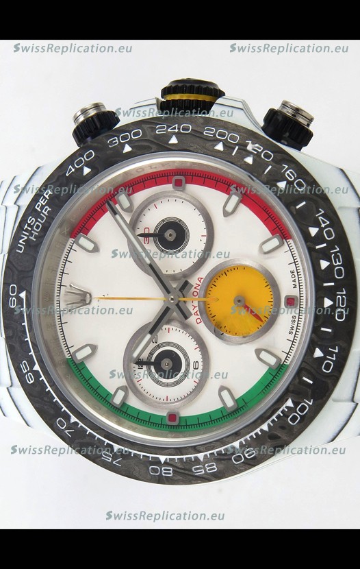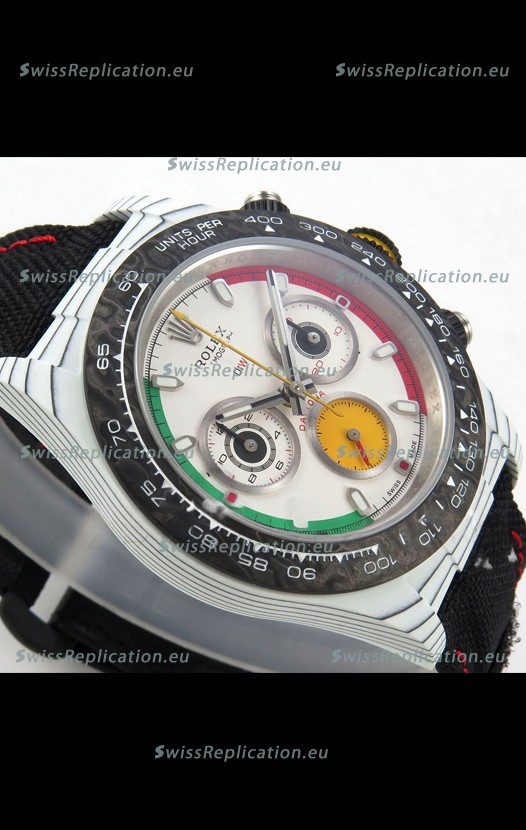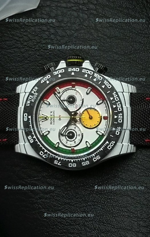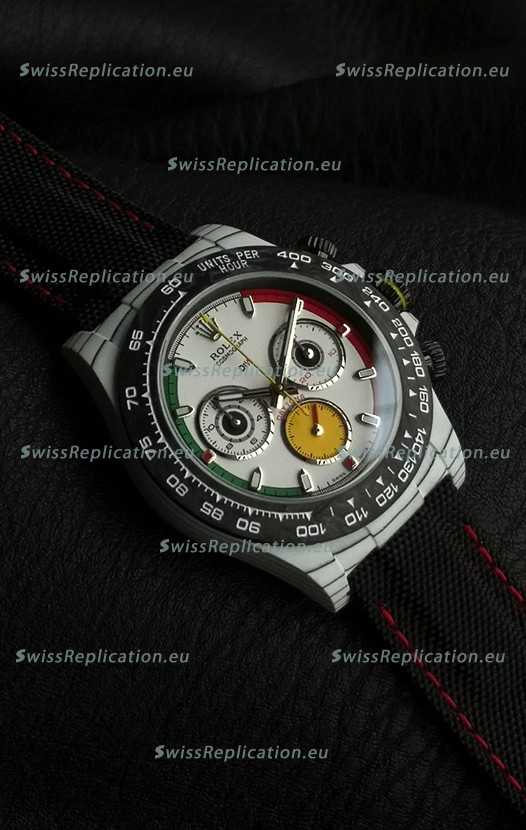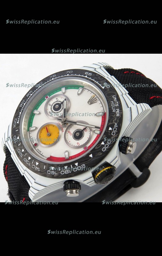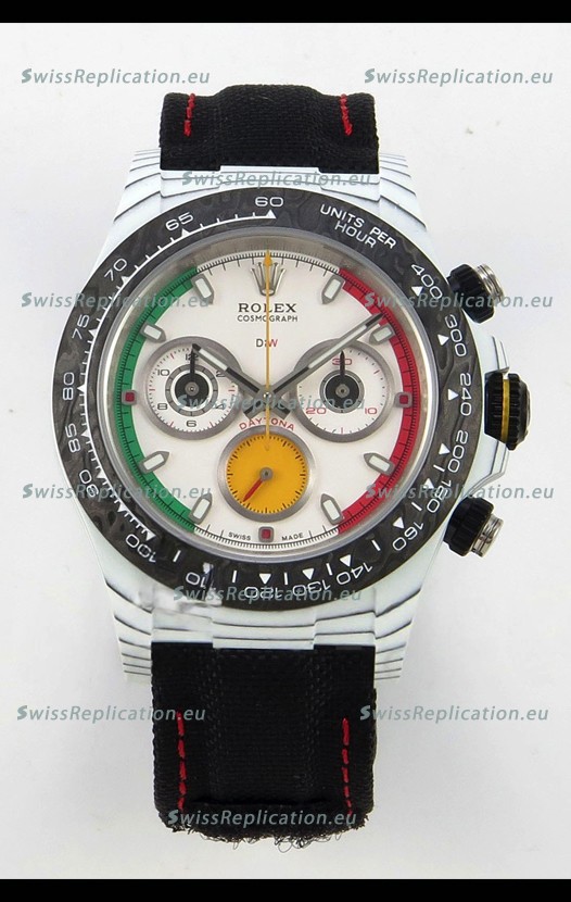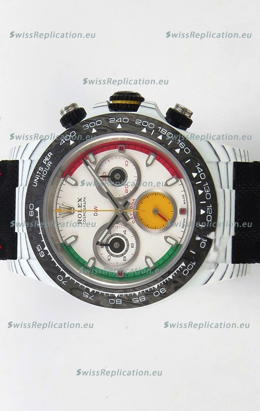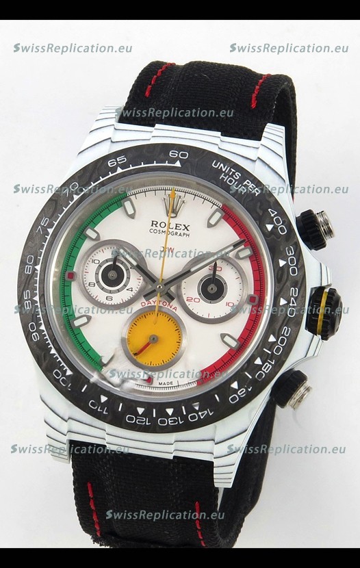 | Description | Rolex Daytona DiW Ferrari White Dial Edition Watch - Lightweight Forged Cabon Casing |