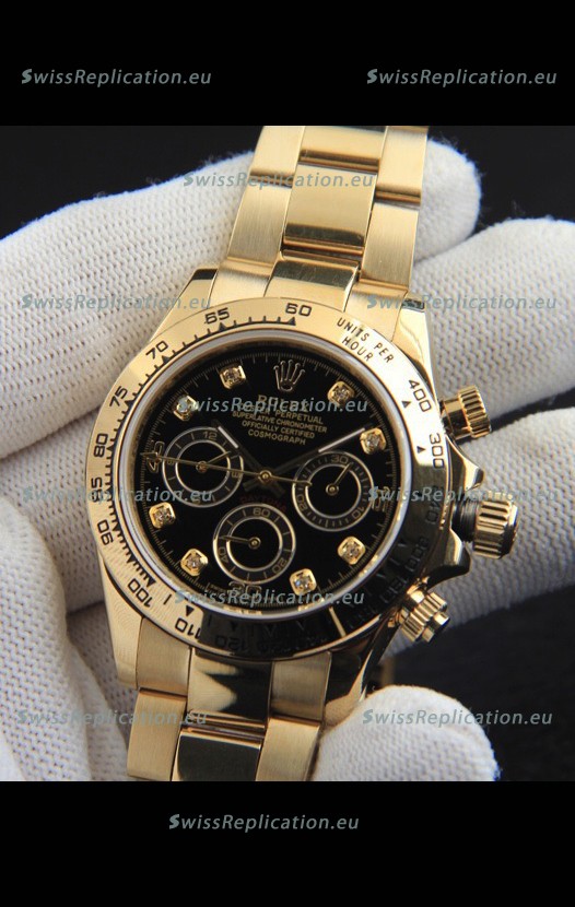 | Description | Rolex Daytona Japanese Movement Gold Casing Replica Watch in Black Dial |
