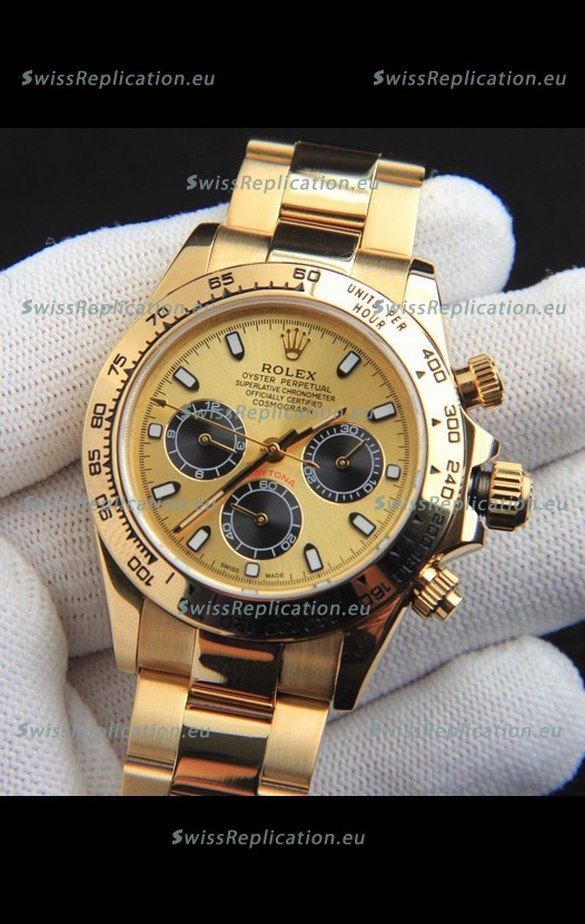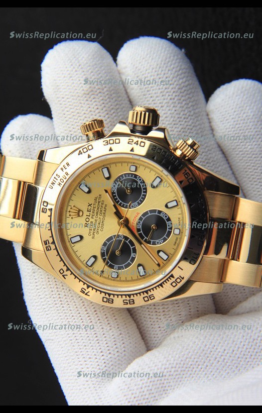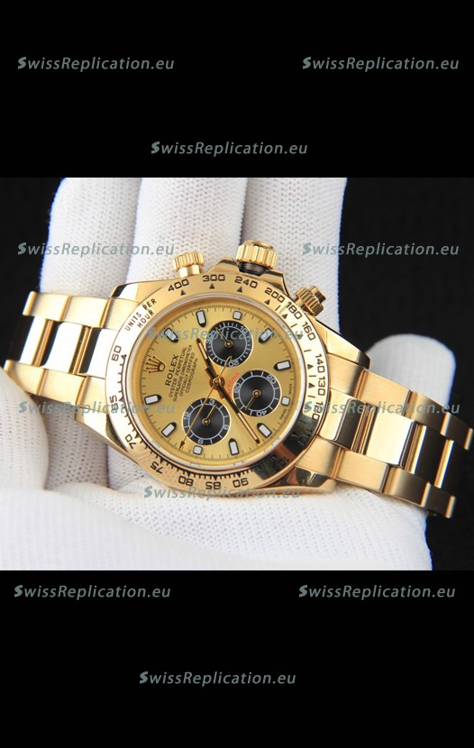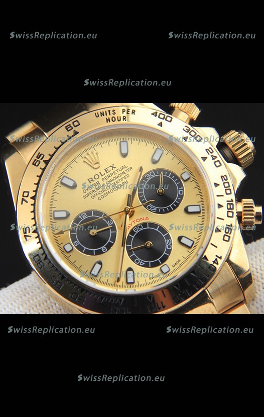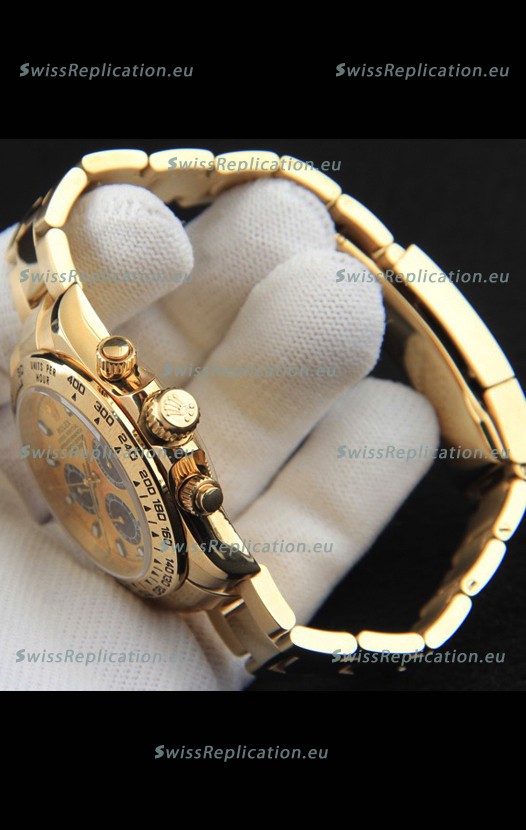 | Description | Rolex Daytona Japanese Movement Gold Casing Replica Watch in Gold Dial |