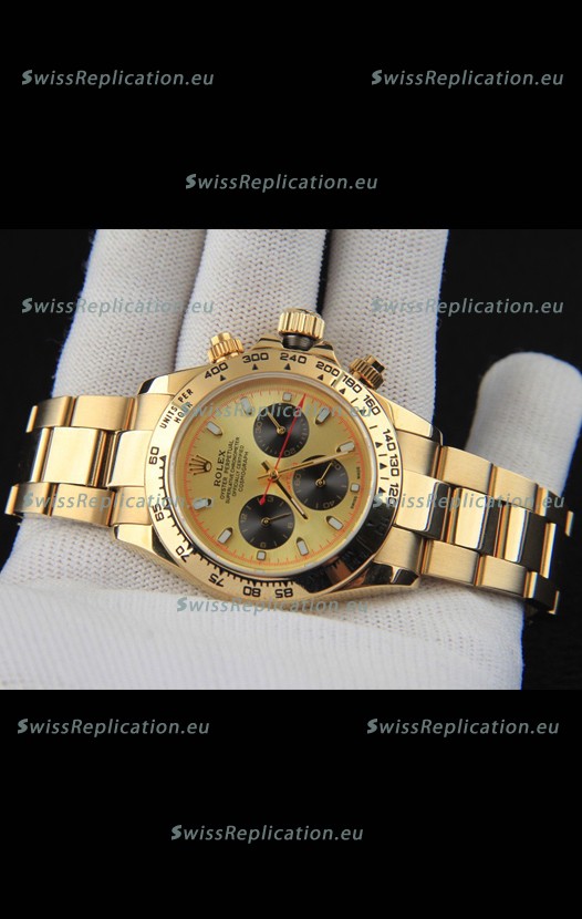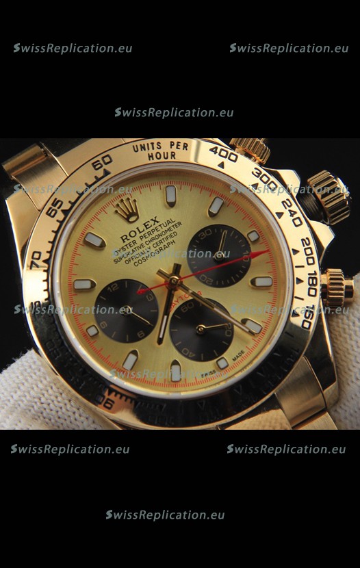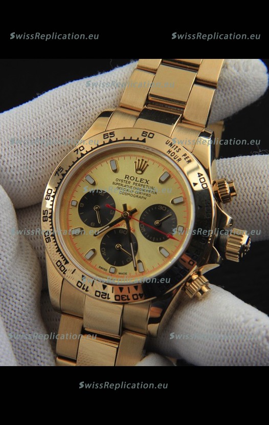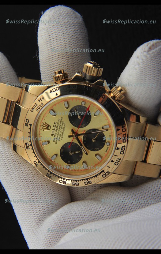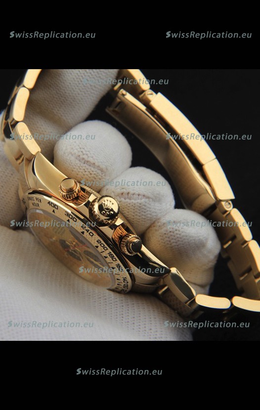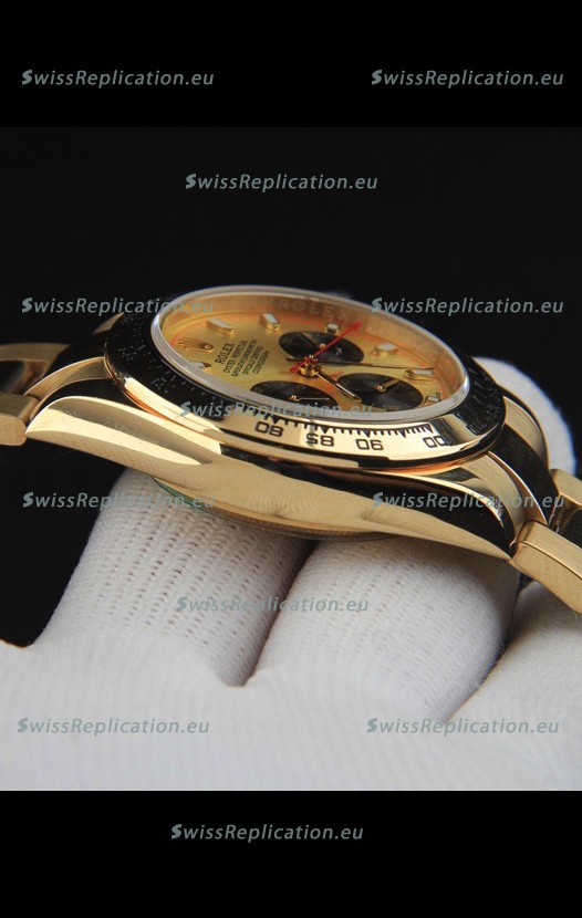 Description Rolex Daytona Japanese Movement Gold Casing Replica Watch in Gold Dial