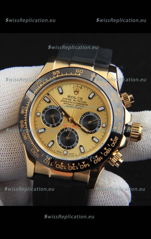 | Description | Rolex Daytona Japanese Movement Gold Casing Replica Watch in Gold Dial |
