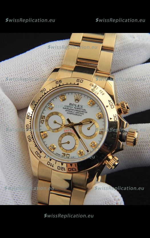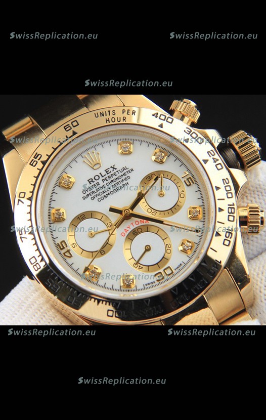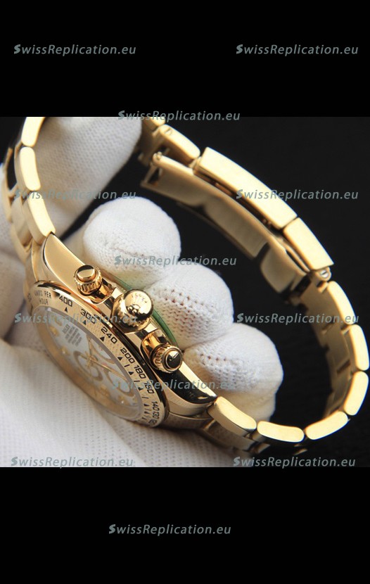 | Description | Rolex Daytona Japanese Movement Gold Casing Replica Watch in White Dial |