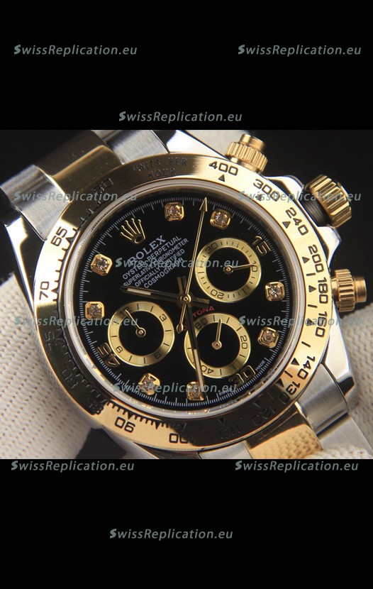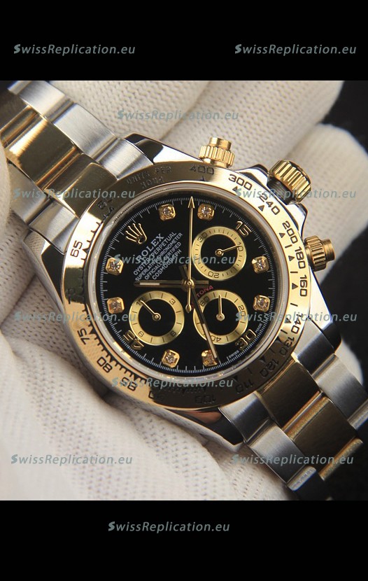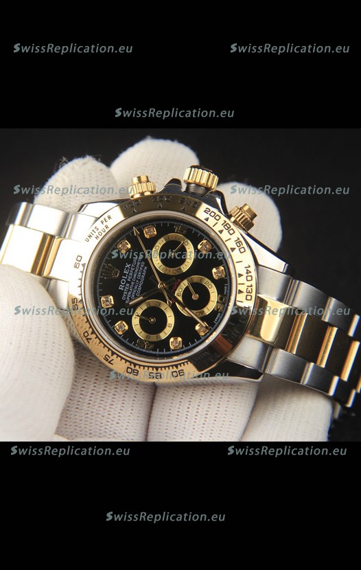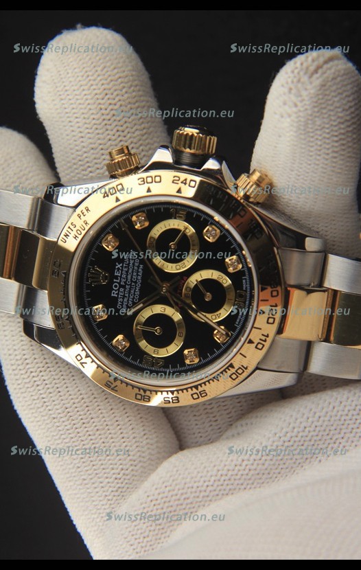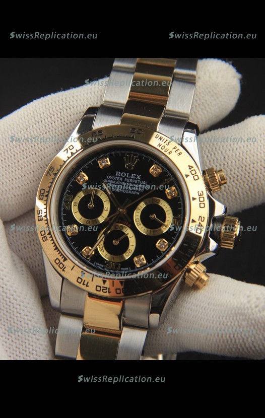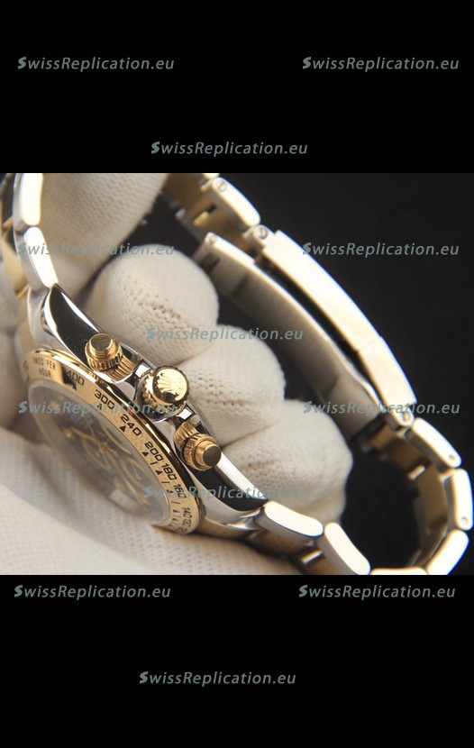 | Description | Rolex Daytona Japanese Movement Two Tone Gold Casing Watch in Black Dial |