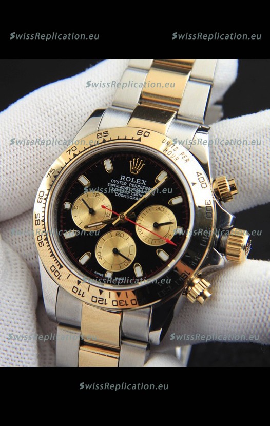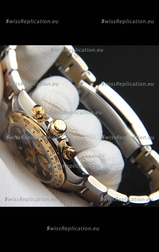 | Description | Rolex Daytona Japanese Movement Two Tone Gold Casing Watch in Black Dial |
