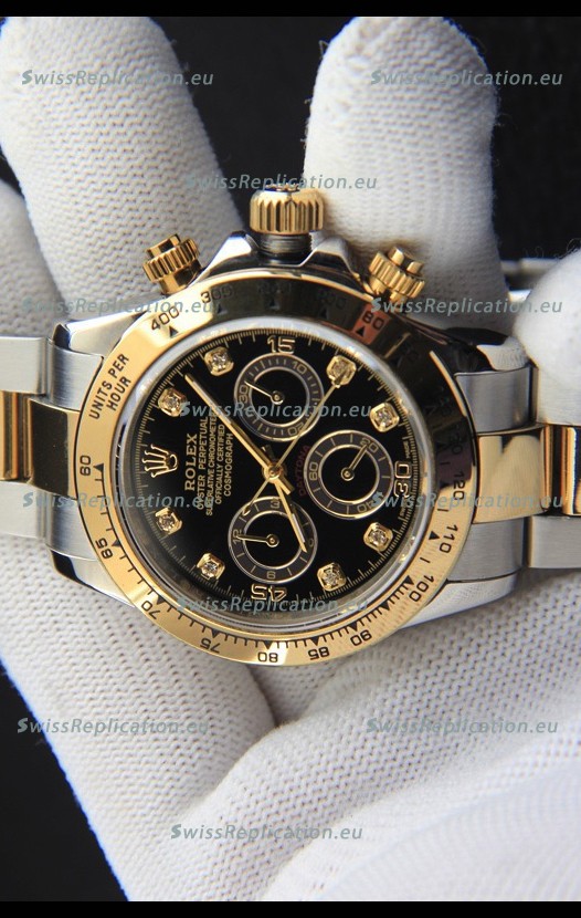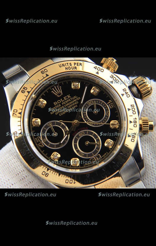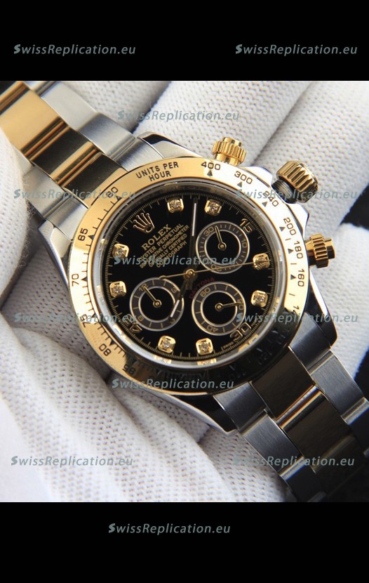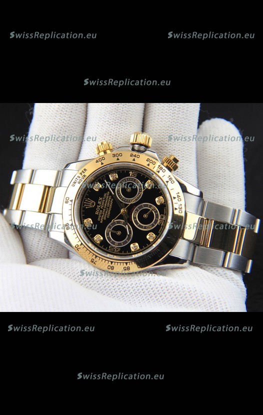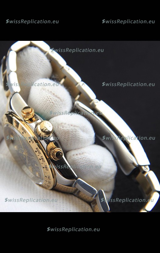 Description Rolex Daytona Japanese Movement Two Tone Gold Casing Watch in Black Dial