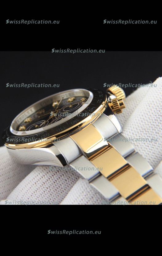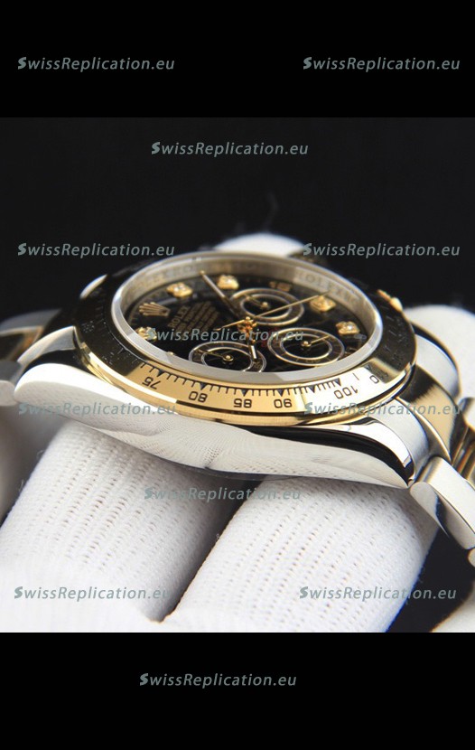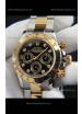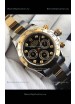 Rolex Daytona Japanese Movement Two Tone Gold Casing Watch in Black Dial