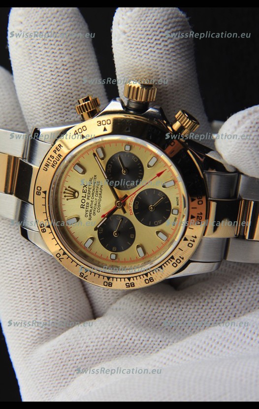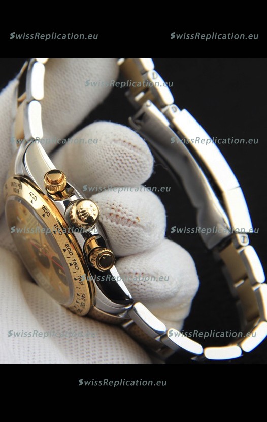 | Description | Rolex Daytona Japanese Movement Two Tone Gold Casing Watch in Gold Dial |