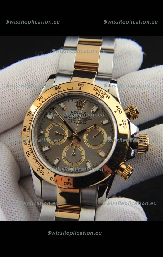 | Description | Rolex Daytona Japanese Movement Two Tone Gold Casing Watch in Grey Dial |