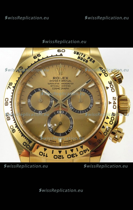 | Description | Rolex Daytona Super Clone 116508 Yellow Gold - Gold Dial Original Cal.4131 Movement |