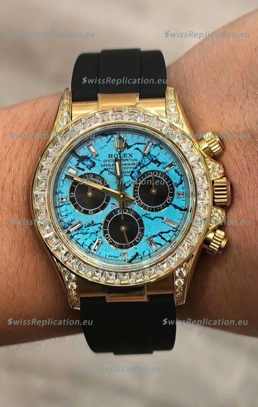 | Description | Rolex Daytona Super Clone 126518LN Yellow Gold Turquoise Dial Original Cal.4131 Movement |