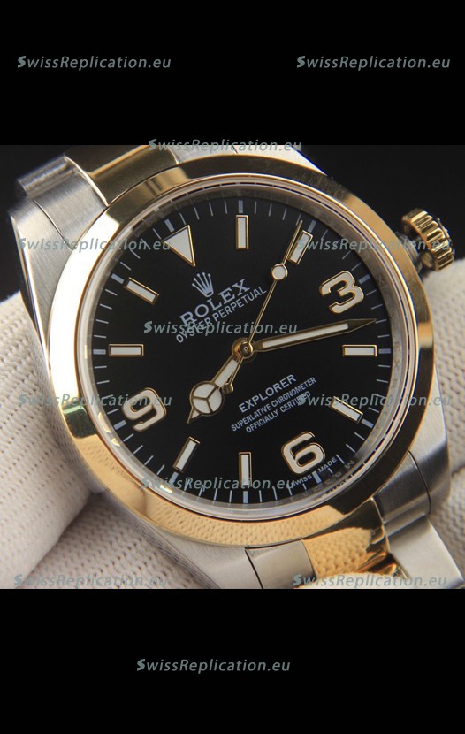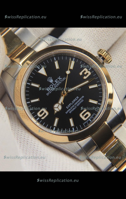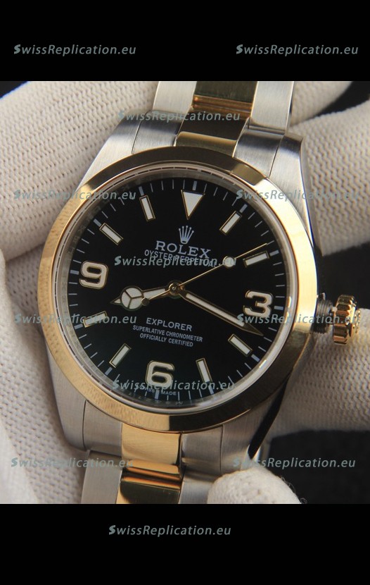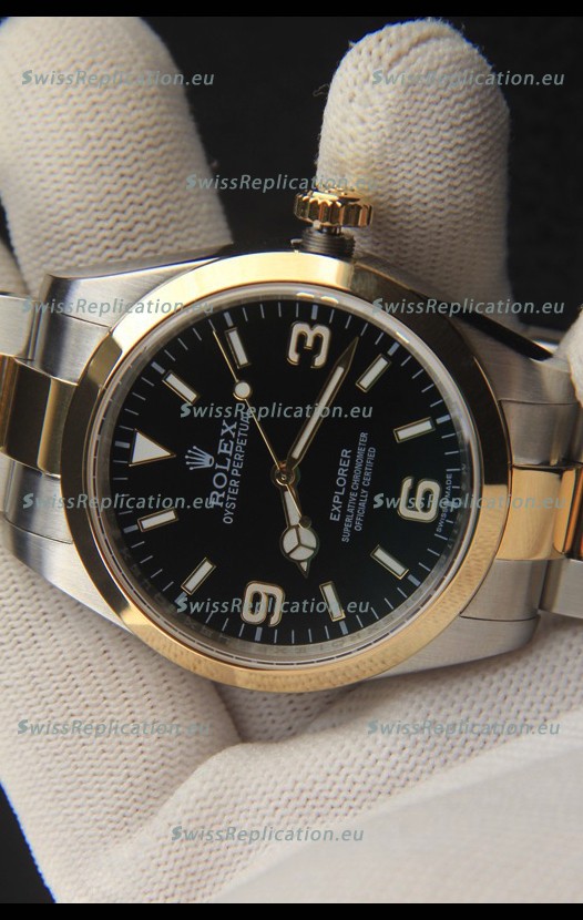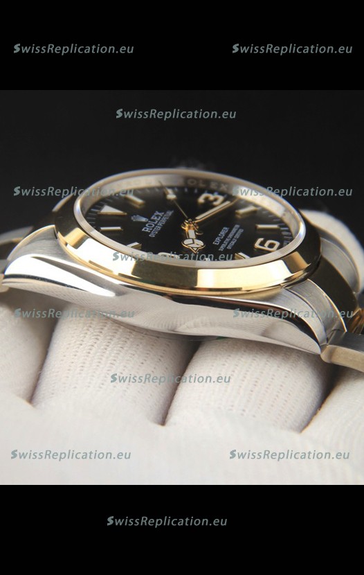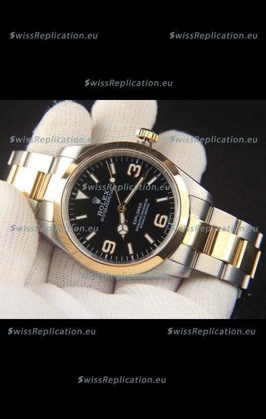 Description Rolex Explorer I Japanese Movement Replica Watch in Two Tone Black Dial 39MM