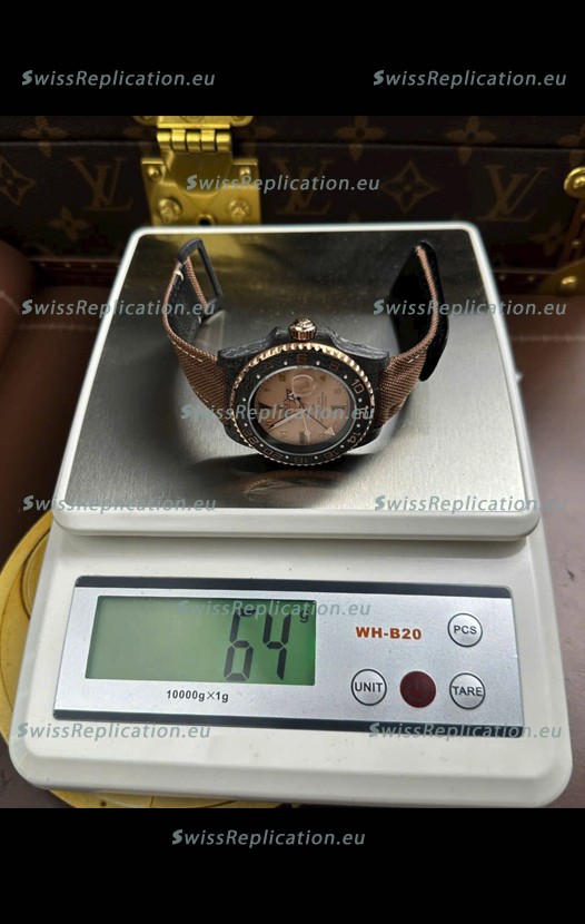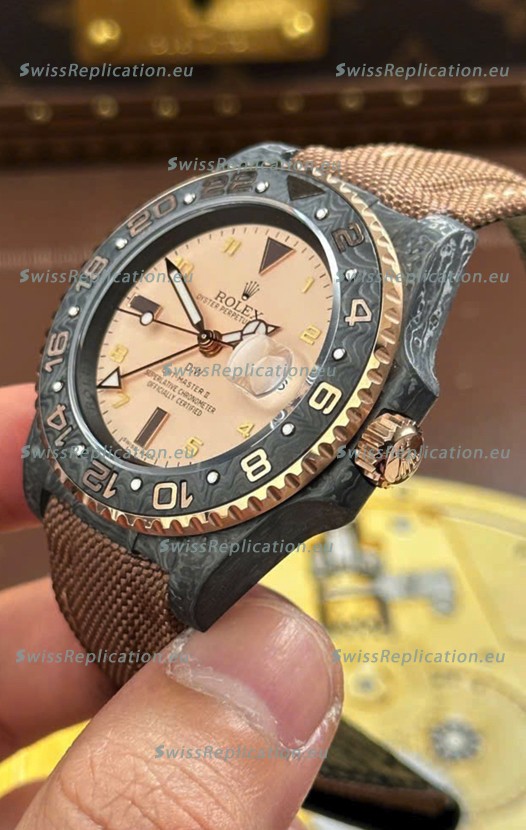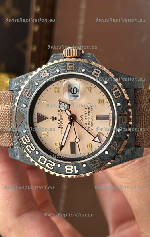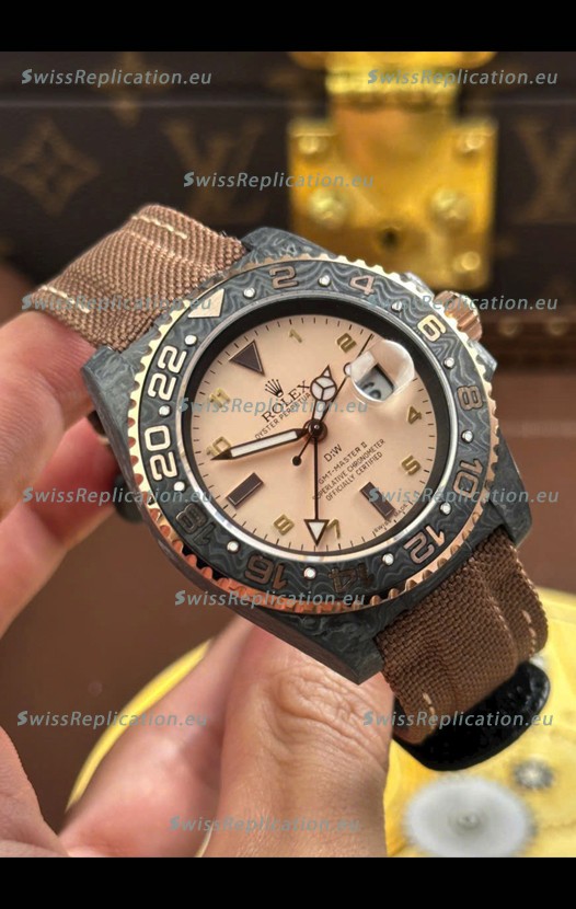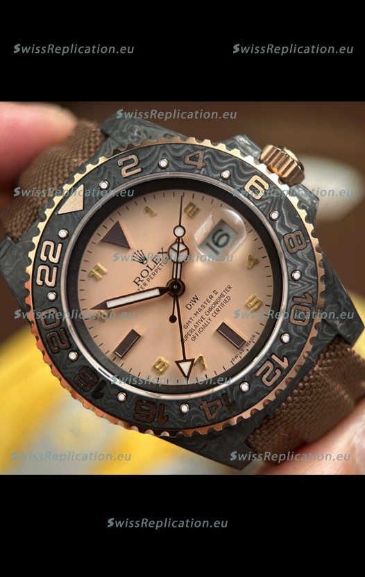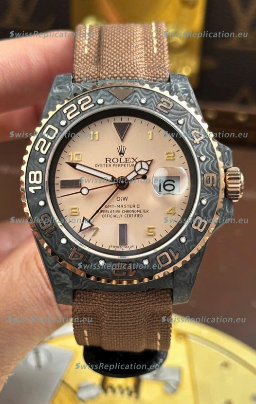 | Description | Rolex GMT Masters DiW Black Carbon Casing Swiss Replica Watch Beige Gray Dial |