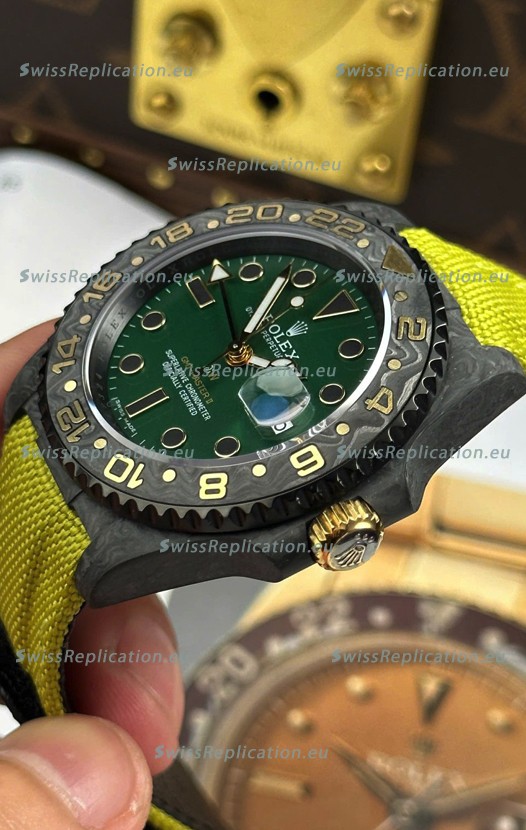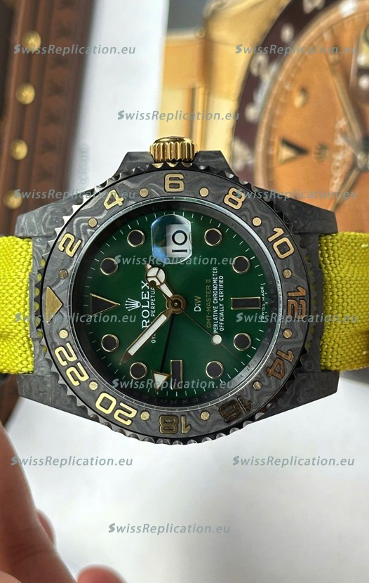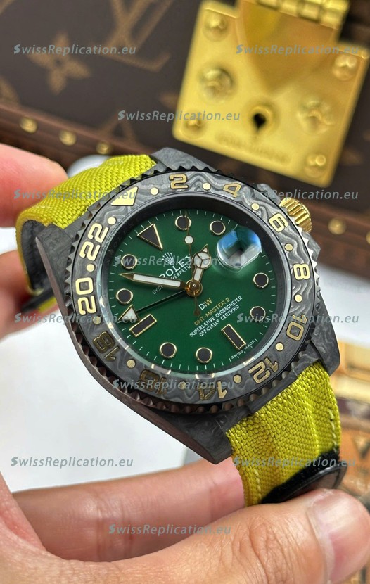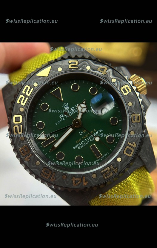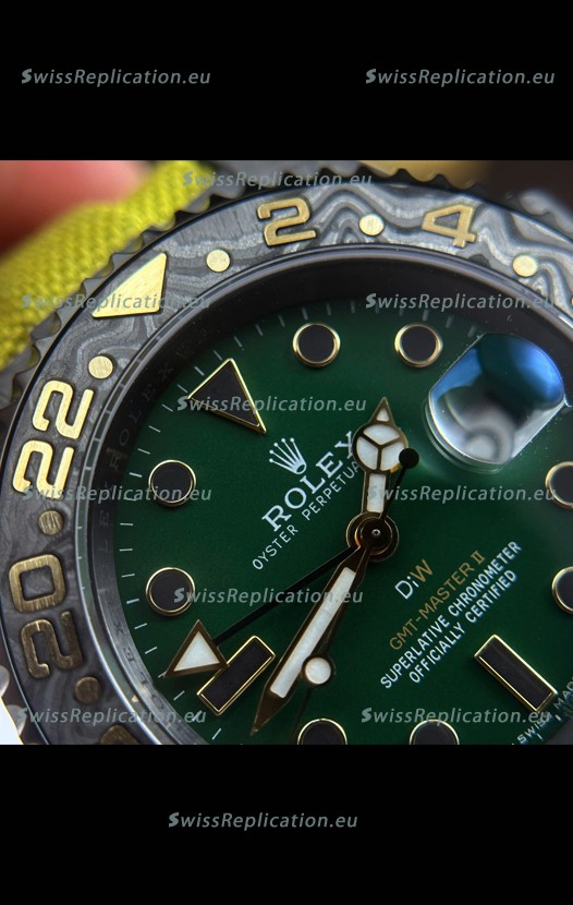 | Description | Rolex GMT Masters DiW Desert Carbon Casing Swiss Replica Watch Green Dial |