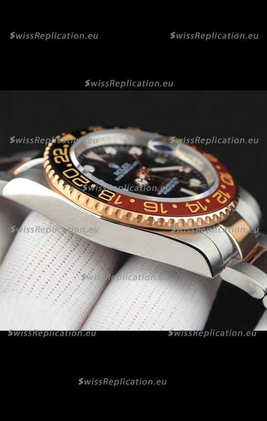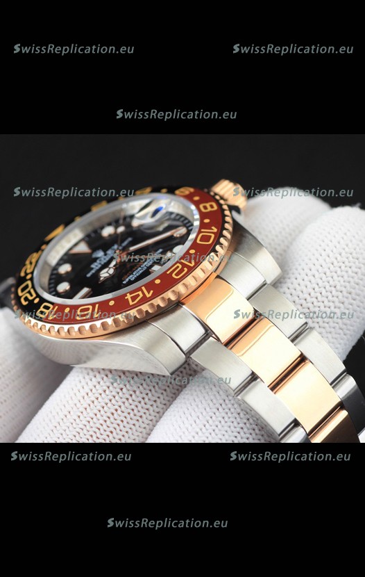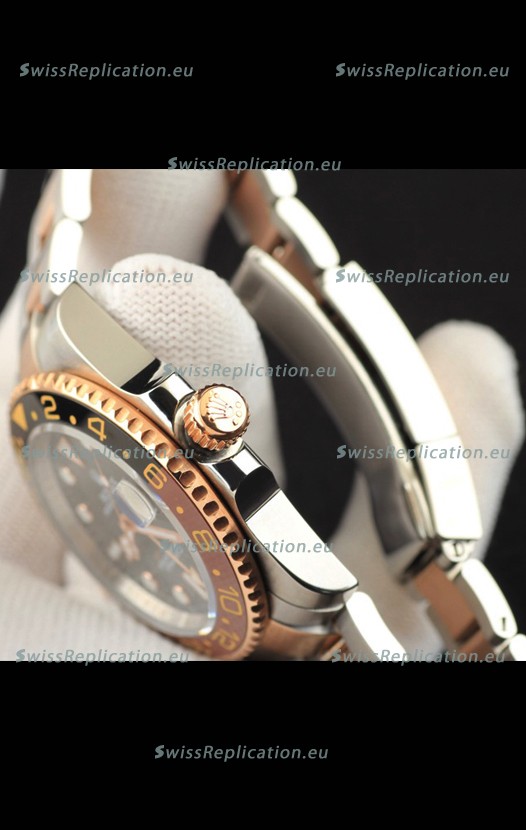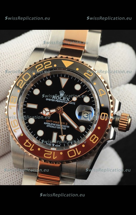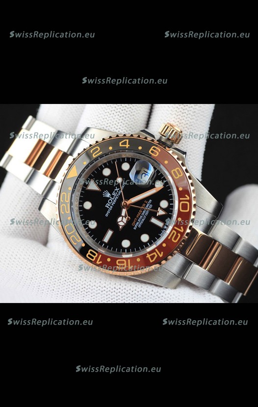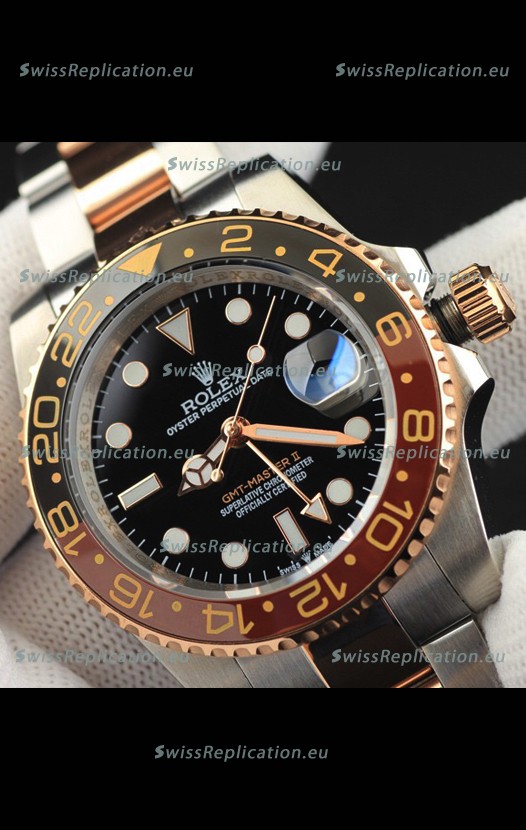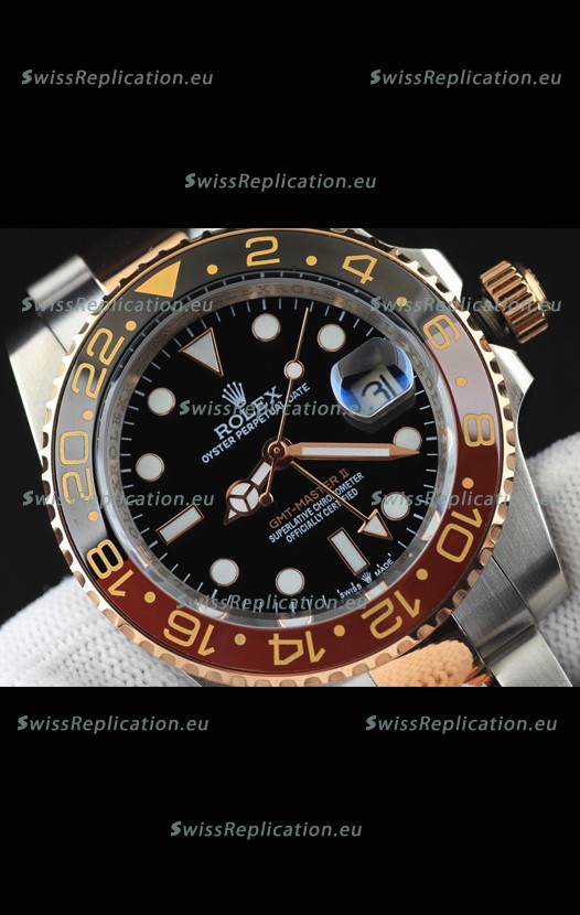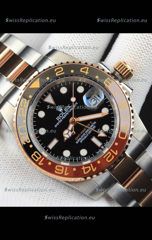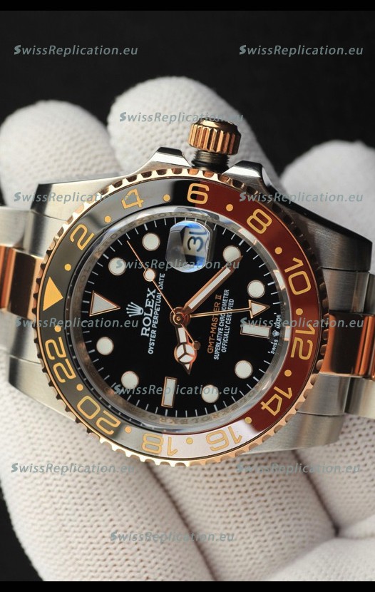 Description Rolex GMT Masters II 2 Tone Rose Gold Plating Japanese Replica Watch Black Dial