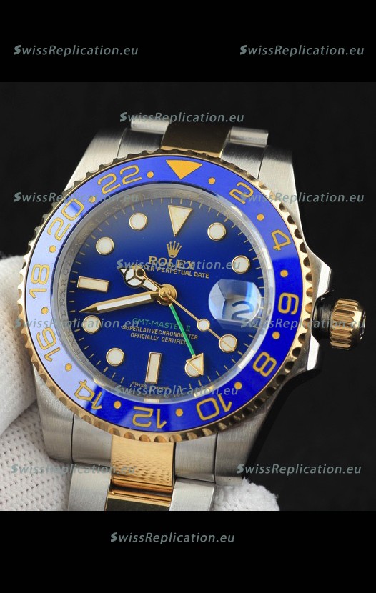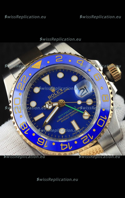 | Description | Rolex GMT Masters II 2 Tone Rose Gold Plating Japanese Replica Watch Blue Dial |