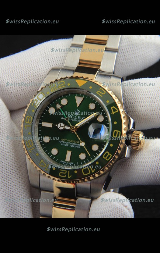 | Description | Rolex GMT Masters II 2 Tone Rose Gold Plating Japanese Replica Watch Green Dial |