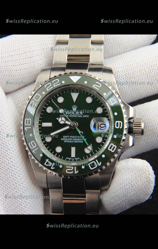 | Description | Rolex GMT Masters II Japanese Movement Replica Watch Steel Case Green Dial |