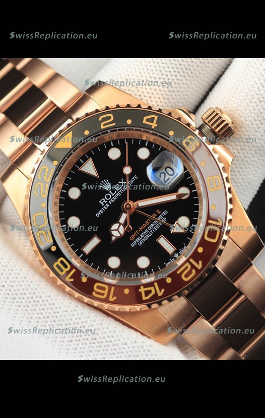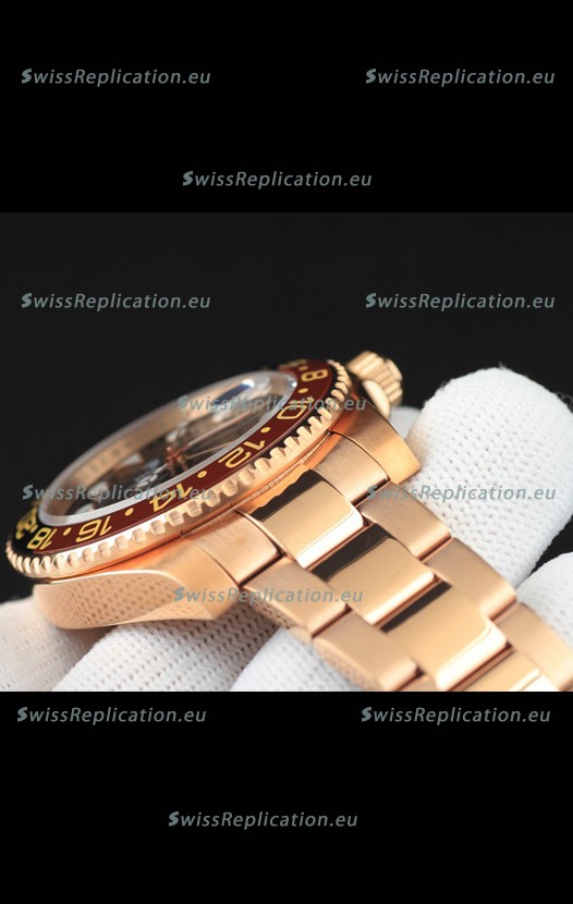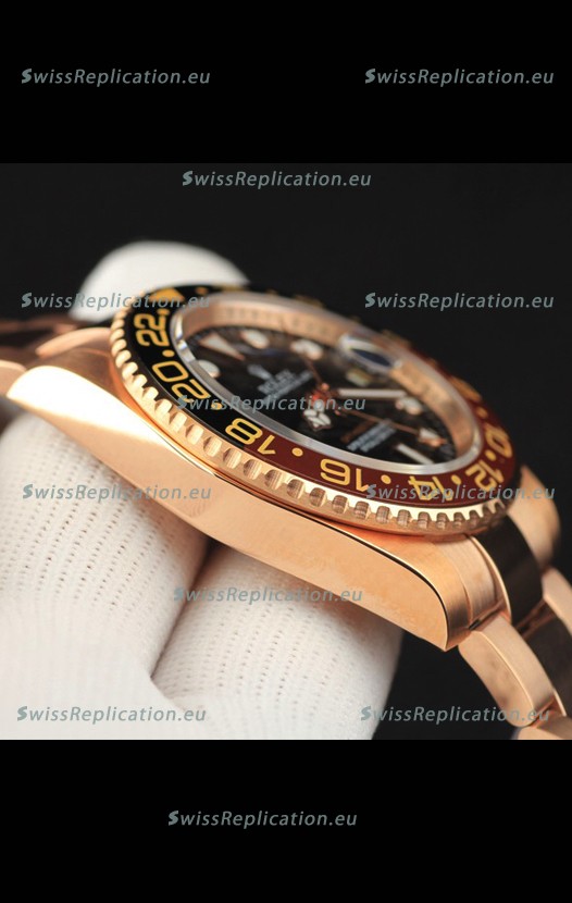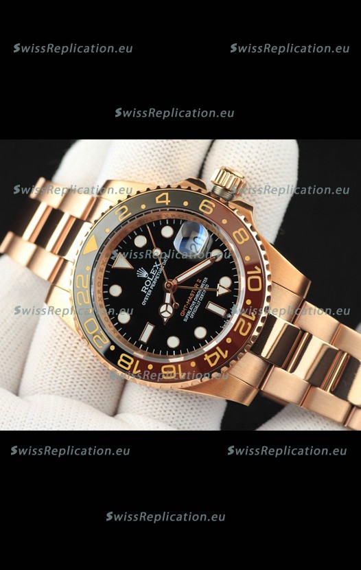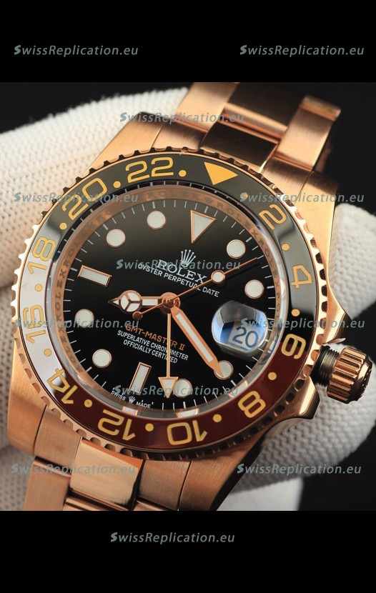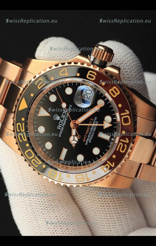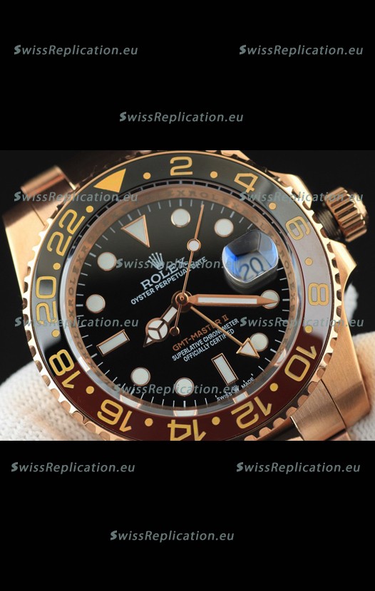 | Description | Rolex GMT Masters II Rose Gold Plating Japanese Replica Watch Black Dial |
