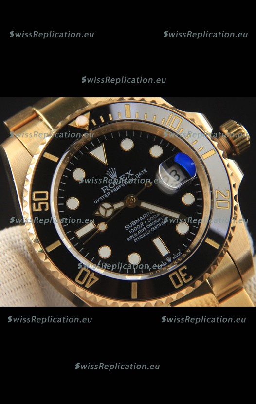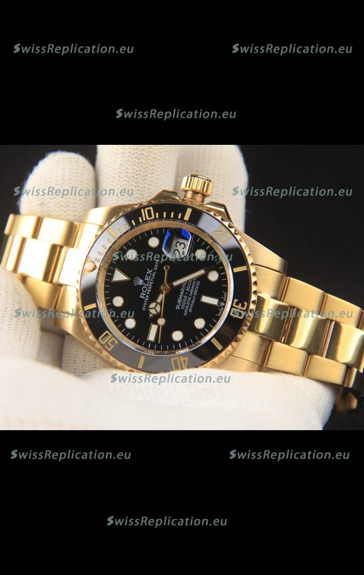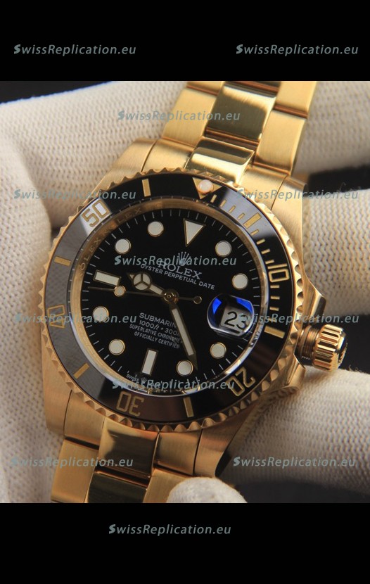 | Description | Rolex Submariner Japanese Replica Watch 904L Steel Yellow Gold - Ceramic Bezel in Black |