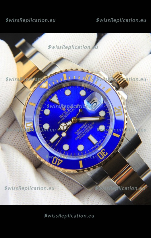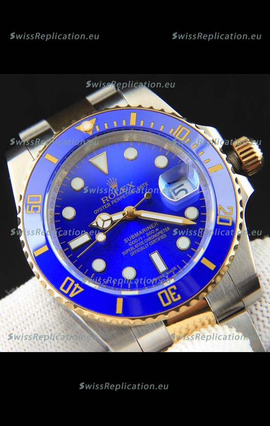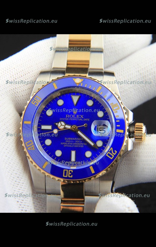 | Description | Rolex Submariner Japanese Replica Watch in 2 Tone Yellow Gold Casing Blue Dial |