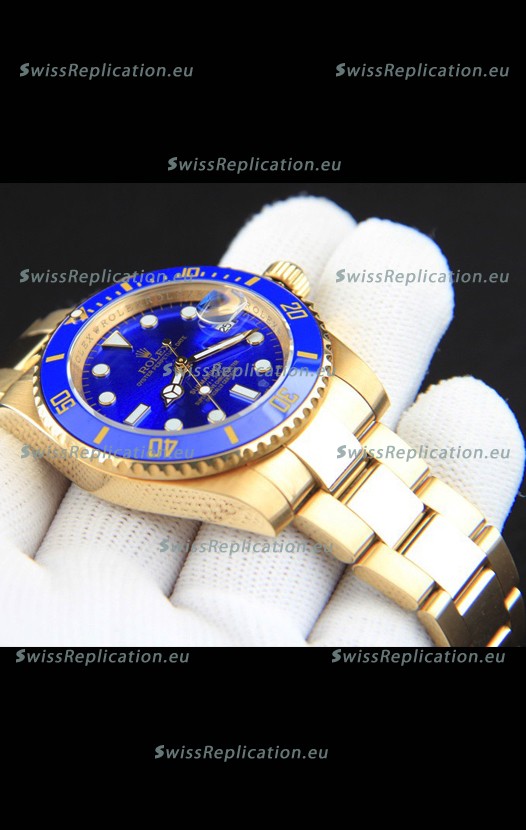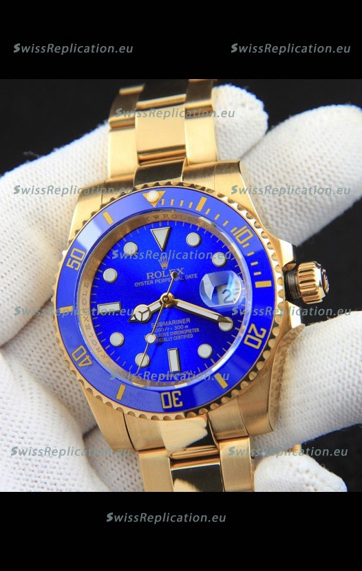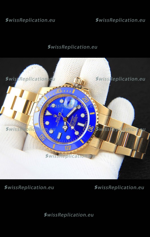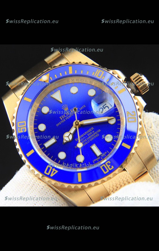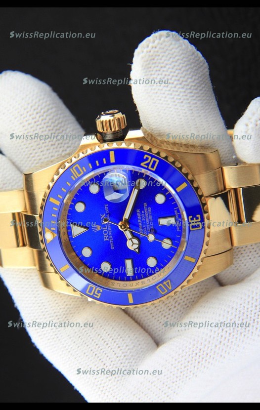 | Description | Rolex Submariner Japanese Replica Watch in Yellow Gold Casing Blue Dial |