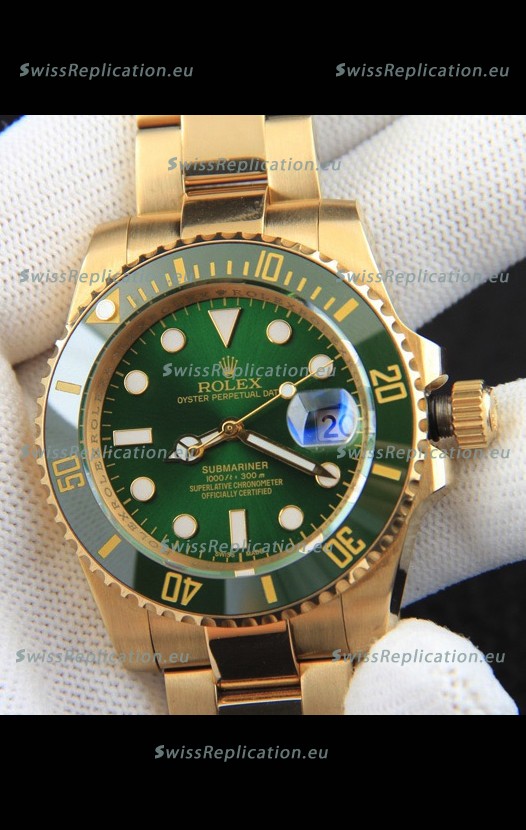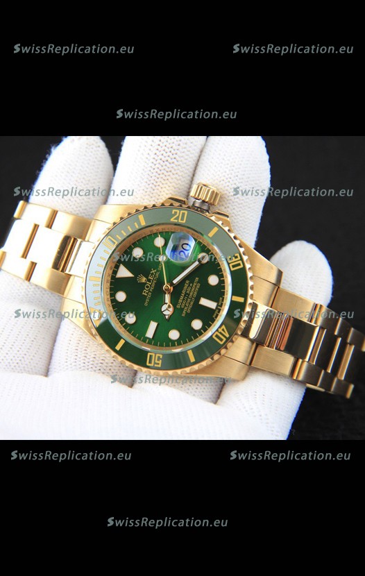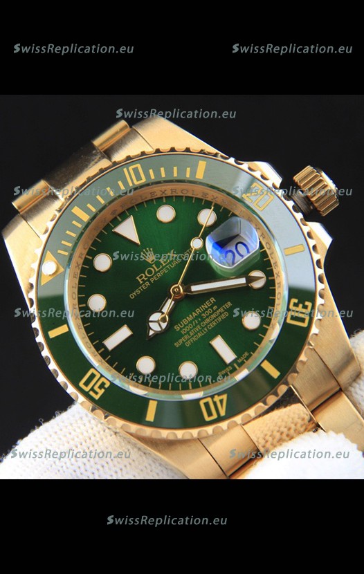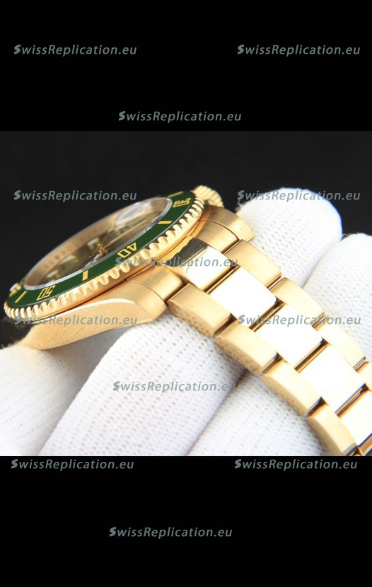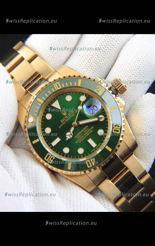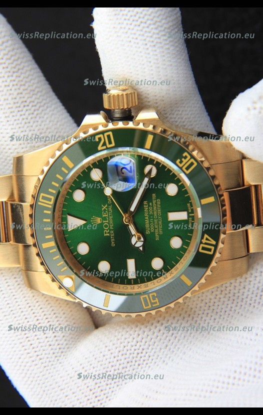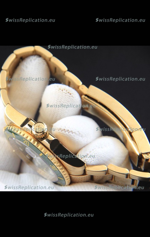 | Description | Rolex Submariner Japanese Replica Watch in Yellow Gold Casing Green Dial |