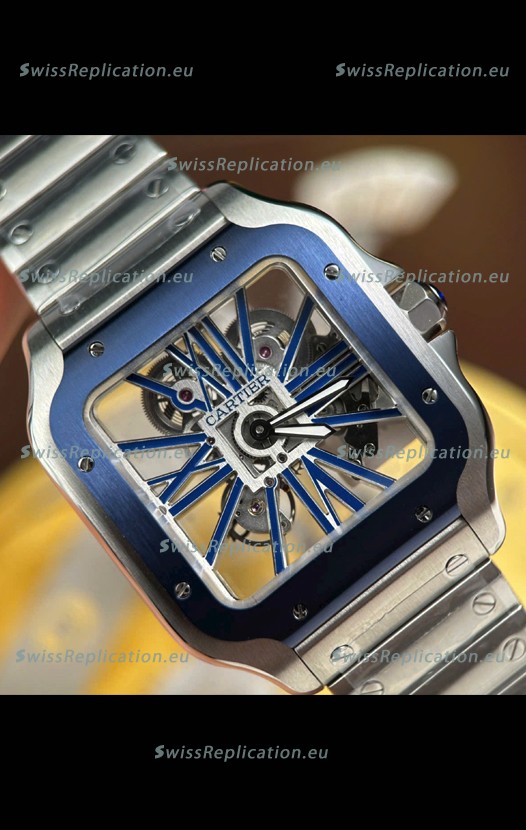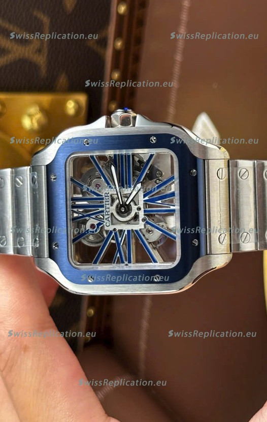 | Description | Santos De Cartier Super Clone Watch in Skeleton Dial Brushed Steel Casing Watch |