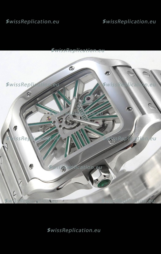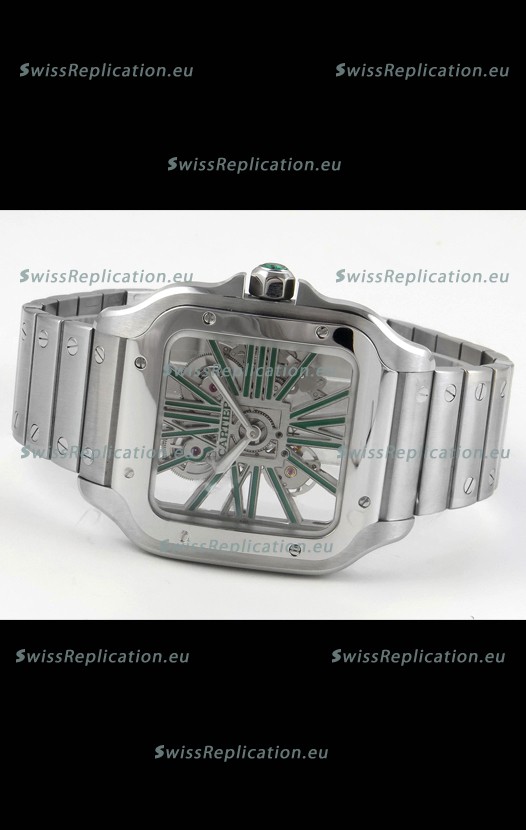 | Description | Santos De Cartier Super Clone Watch in Skeleton Dial Stainless Steel Case |