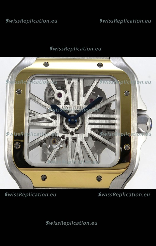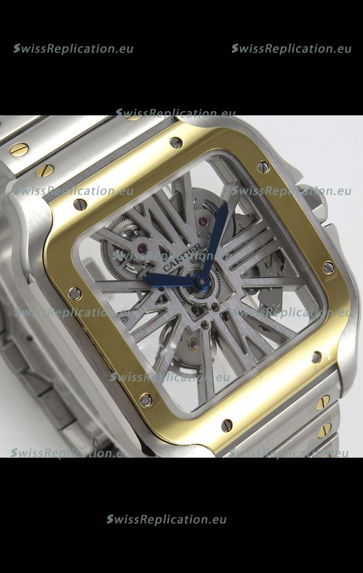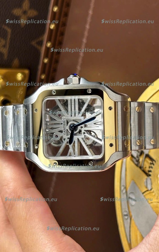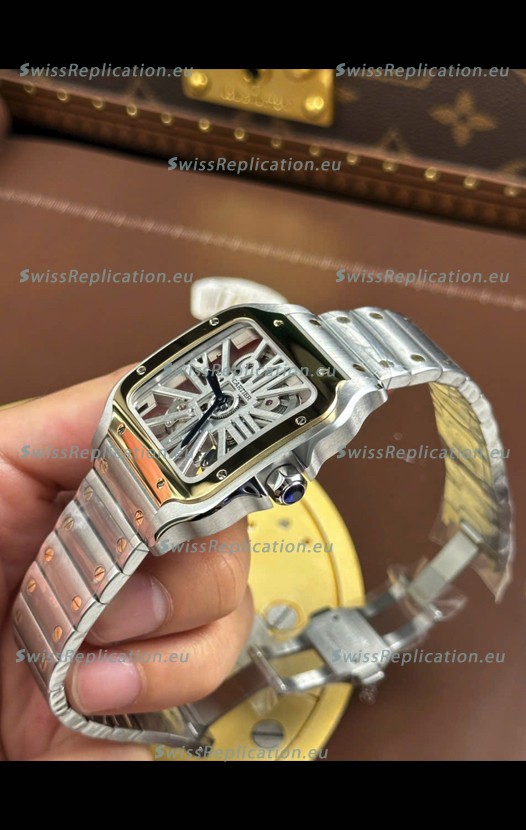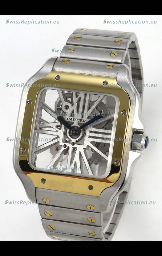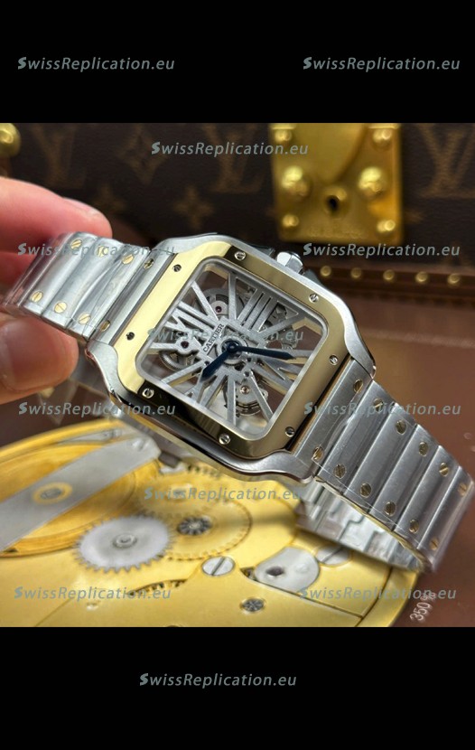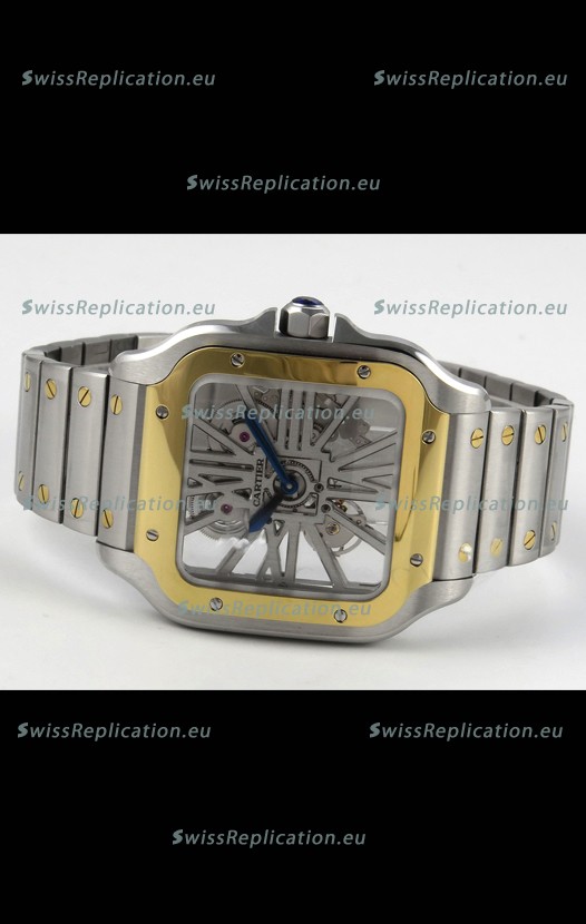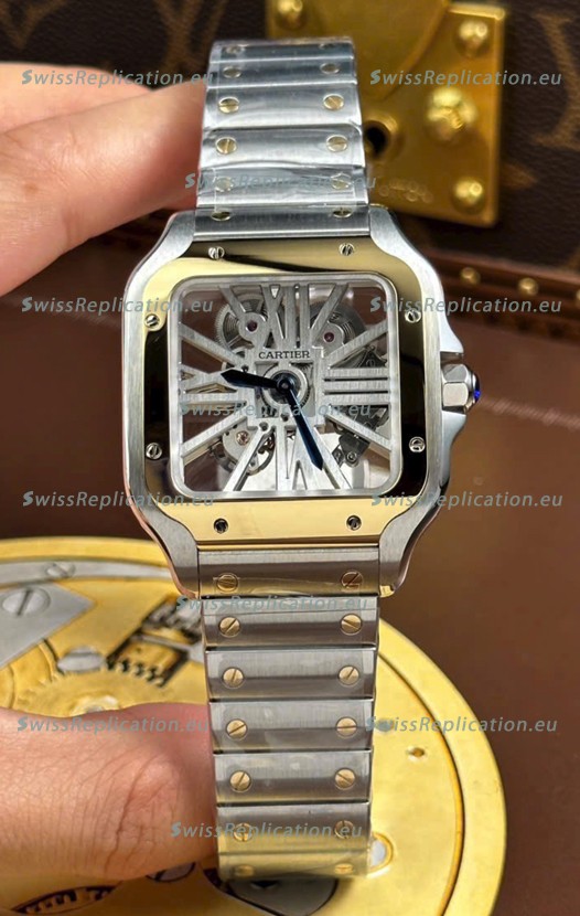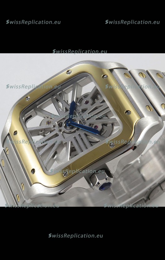 | Description | Santos De Cartier Super Clone Watch in Skeleton Dial Two Tone Casing Watch |
