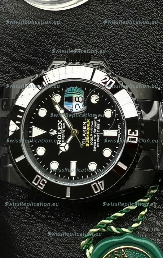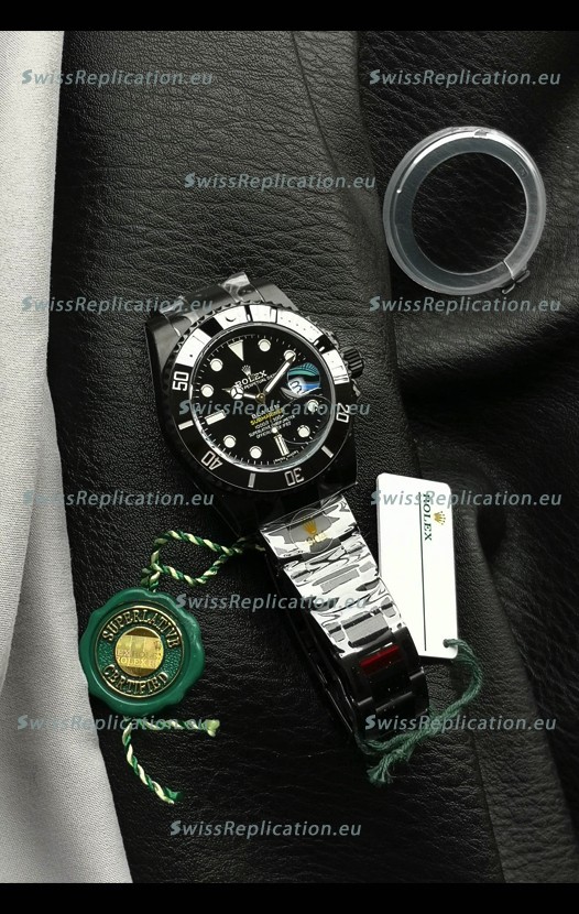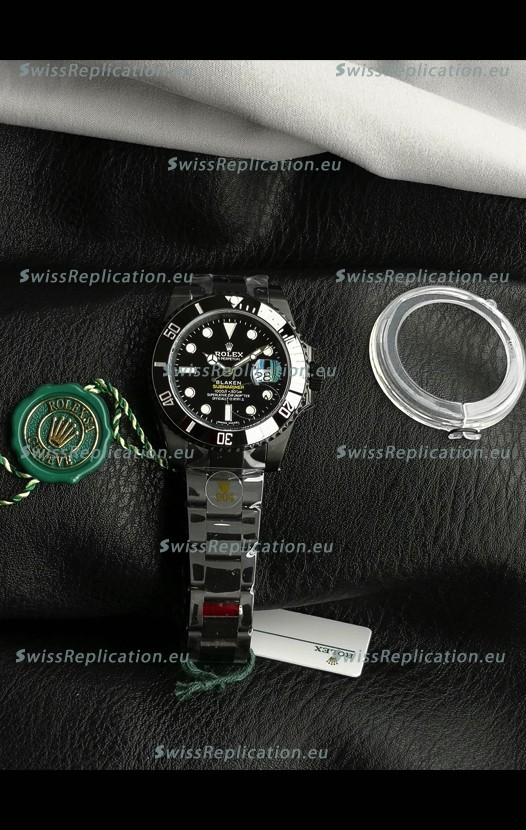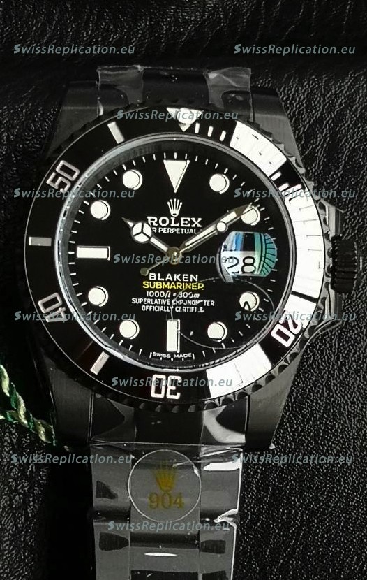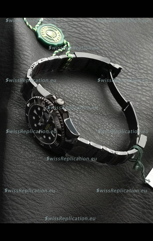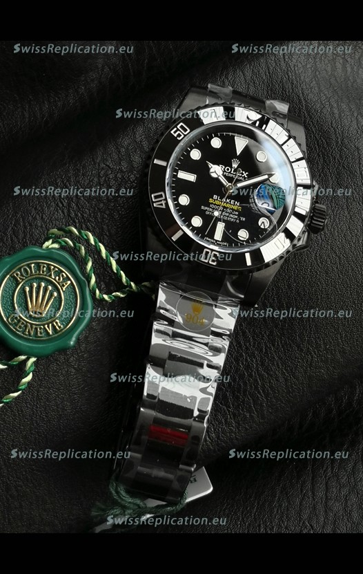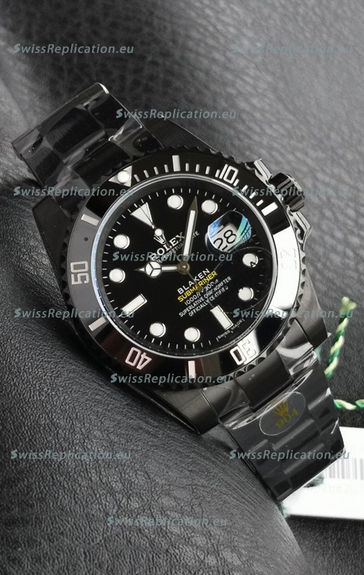| Description | Rolex Submariner Blaken DLC Coated Swiss Replica Watch in Black Dial |