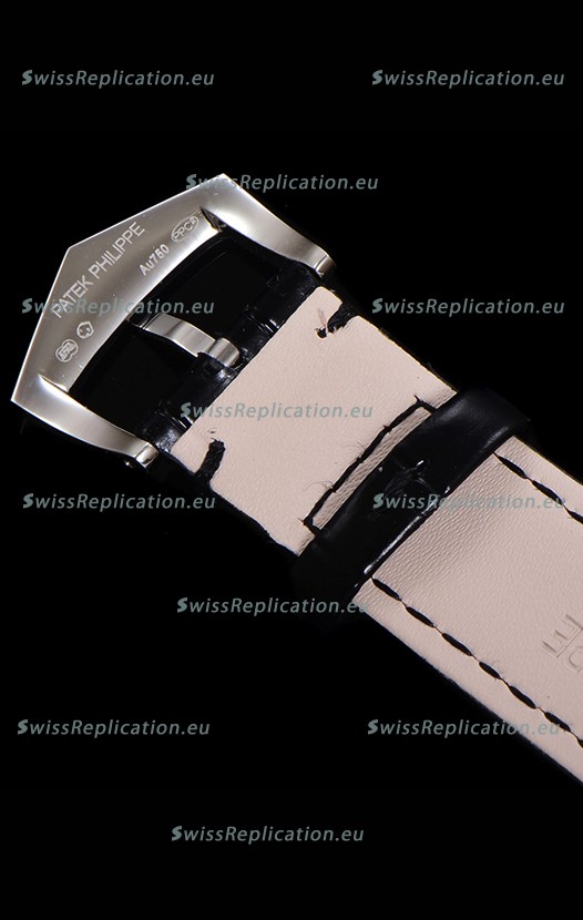Genuine Leather Strap with Stainless Steel Tang buckle complete with Patek Philippe Markings and Engravings